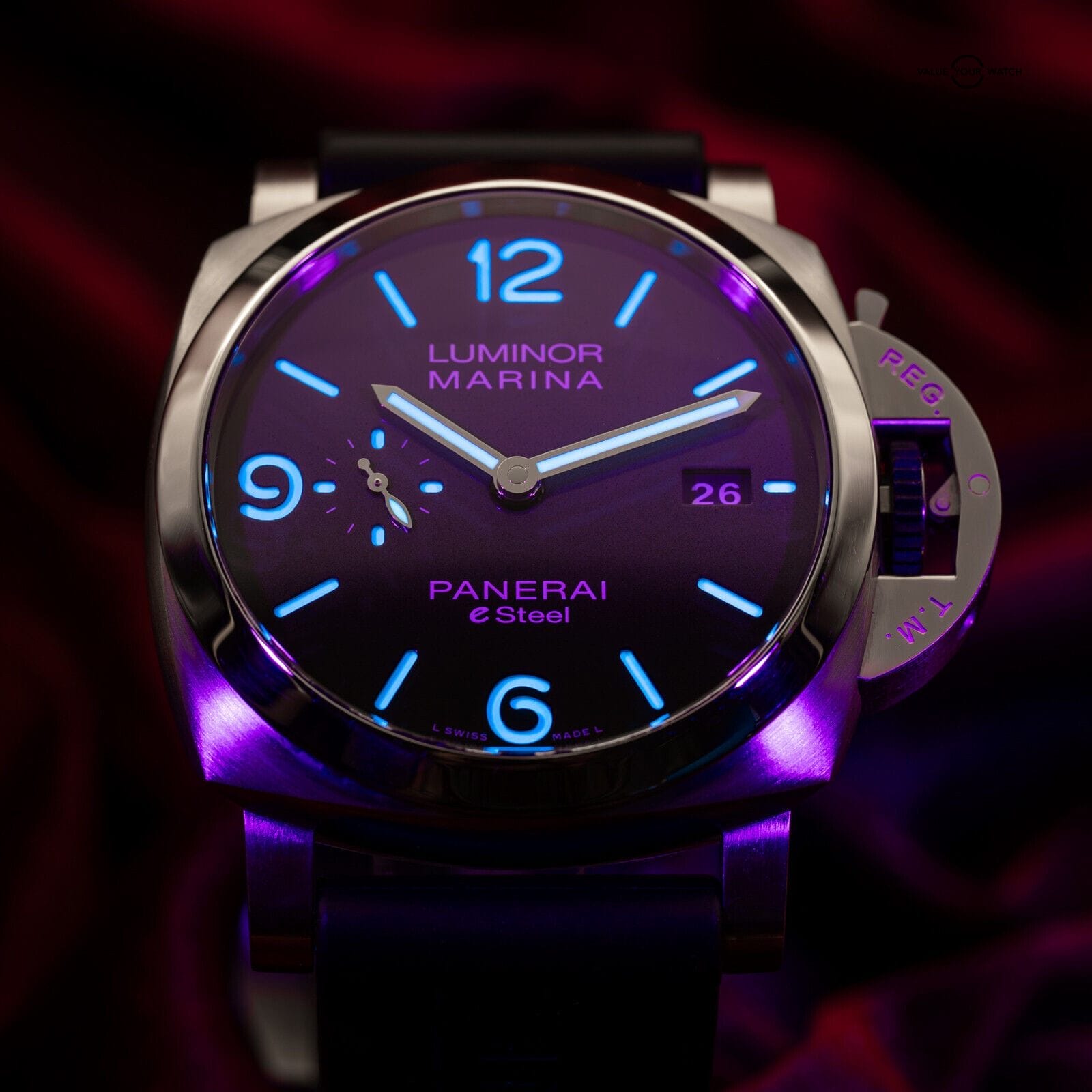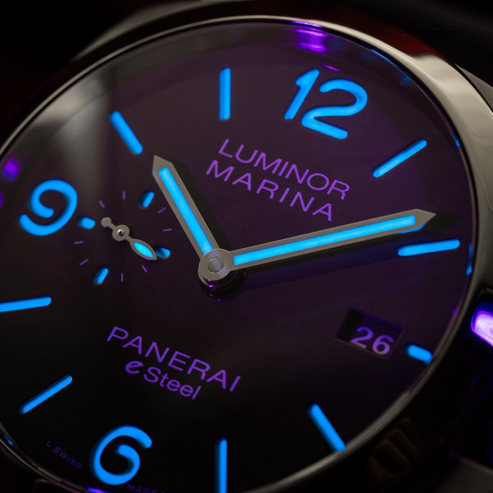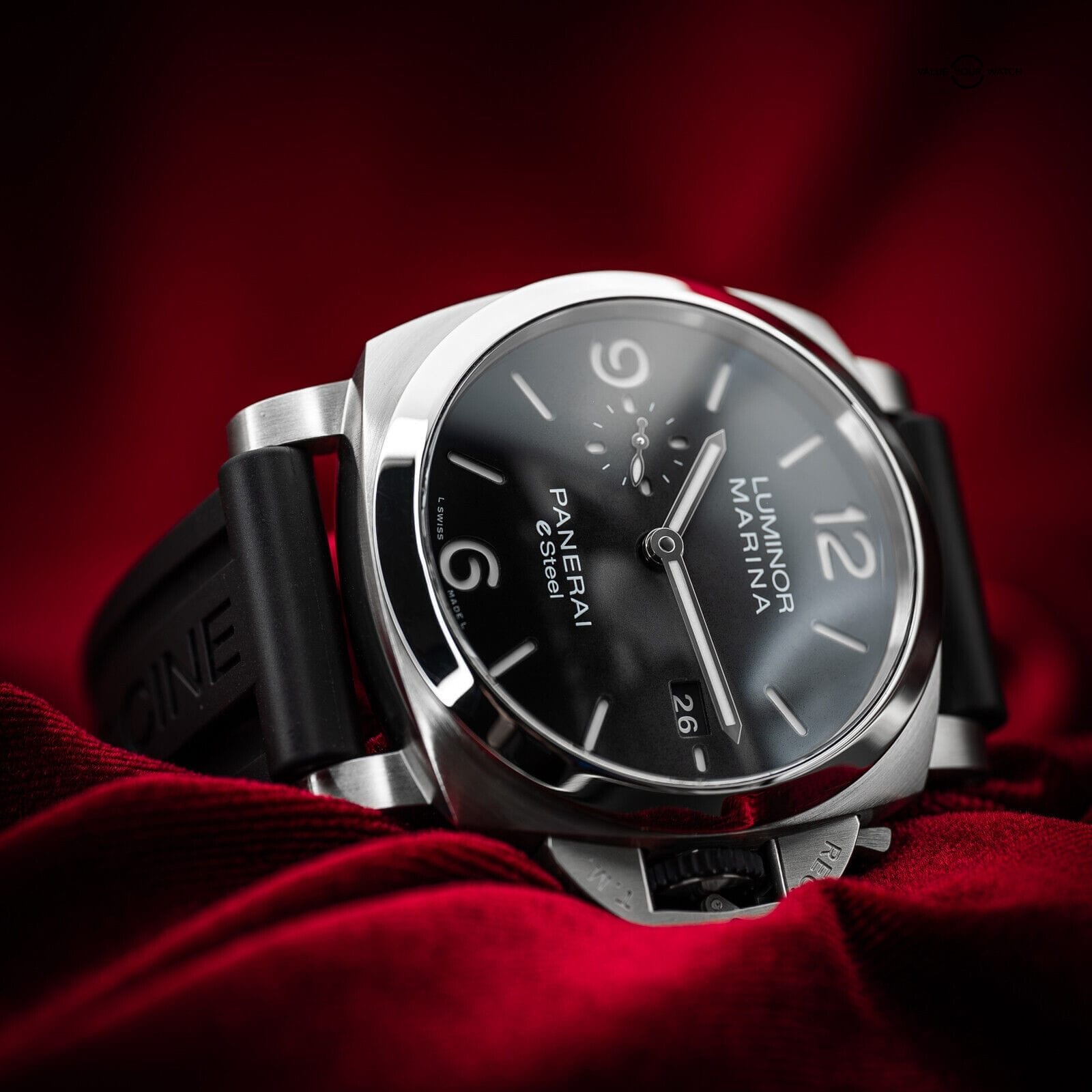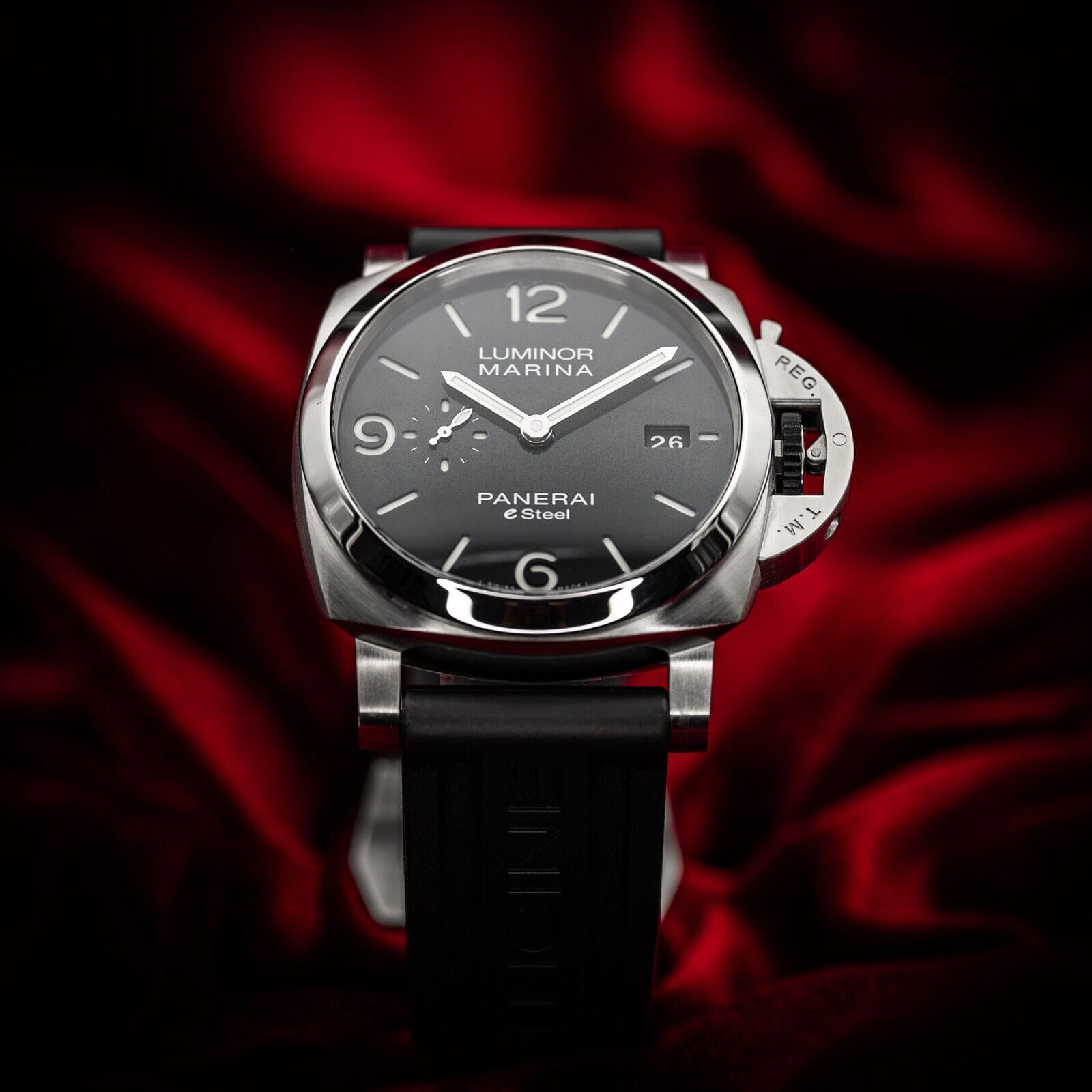 Crafted from ‘eSteel’, Panerai’s new environmentally conscious steel, this timepiece is as sturdy and stylish as ever. The anthracite grey gradient dial and polished steel case create a striking combination of blacks & greys.