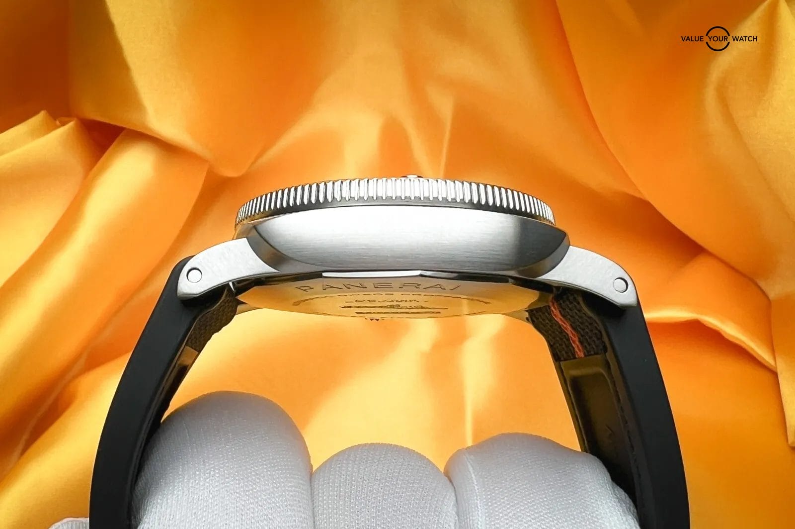 Powering the watch is the automatic movement, P.900, offering a power reserve of up to 72 hours. The engraved solid case back acts as a protective shield, while the crown stands out with the iconic Panerai crown protector, sporting an impressive and distinctive design.