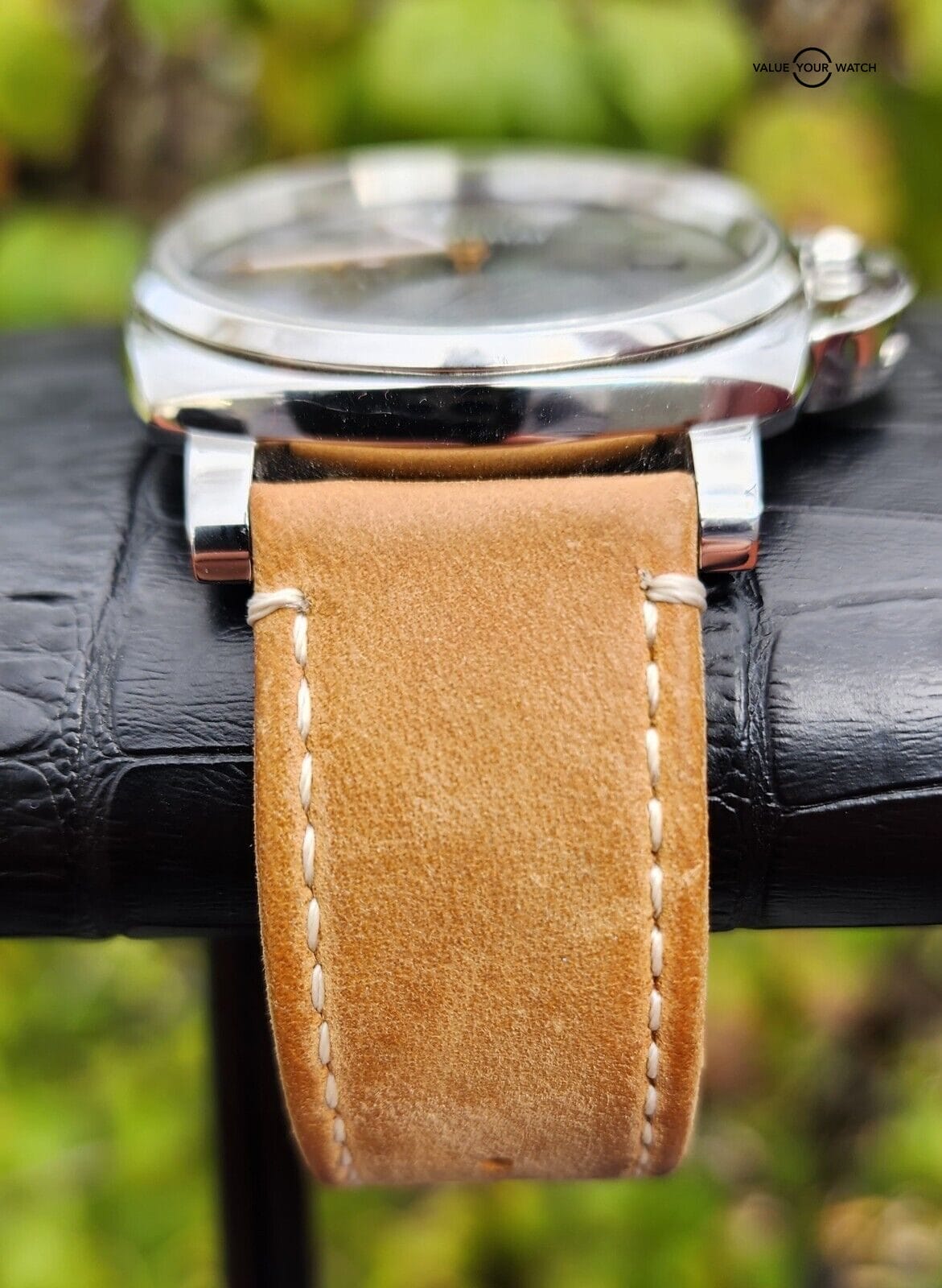 - 42mm Highly Polished Stainless Steel Case w/ a Panerai Black Leather Alligator Strap