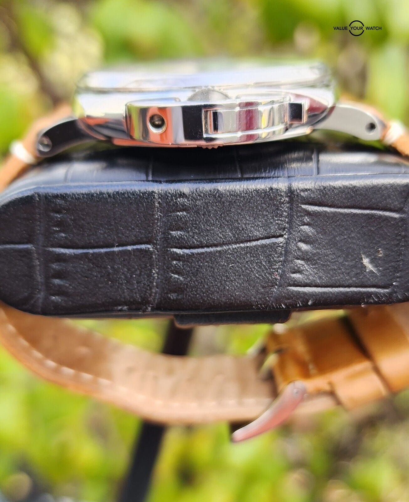 Showcasing a Panerai Luminor Due, a unique timepiece which transcends formal and sport wear to be very versatile and can be worn for any occasion. The low profile design fits comfortably on your wrist and the polished case with gold hour markers make this a very notable when worn.
