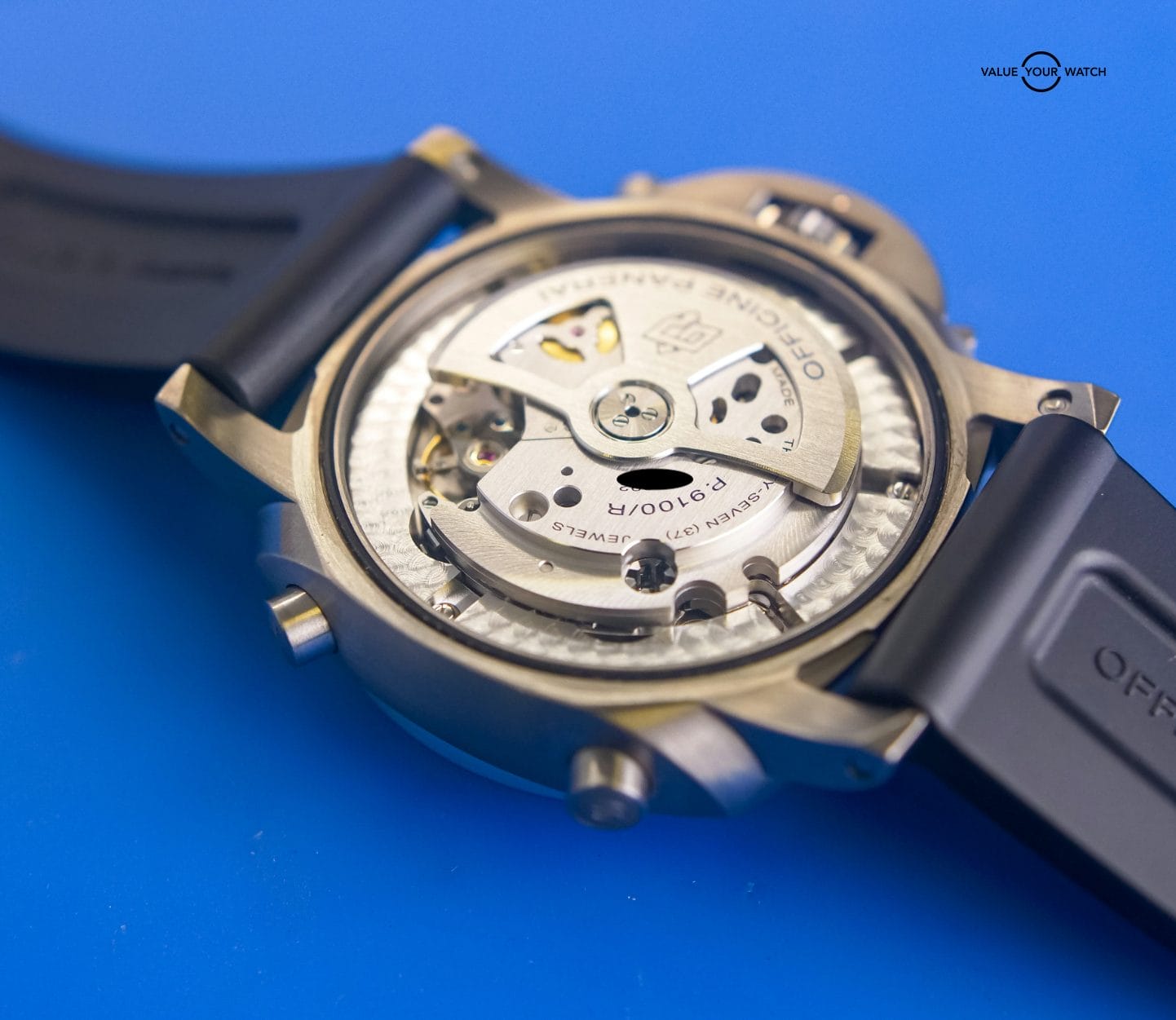 The quick swapping lugs allows for easy strap change, which you will definitely use with the four included straps: An orange Panerai strap, two black Panerai straps (one small, one large), and a Miami Blue Horus strap. The watch comes triple boxed with screwdriver set, strap tool & operating manual.