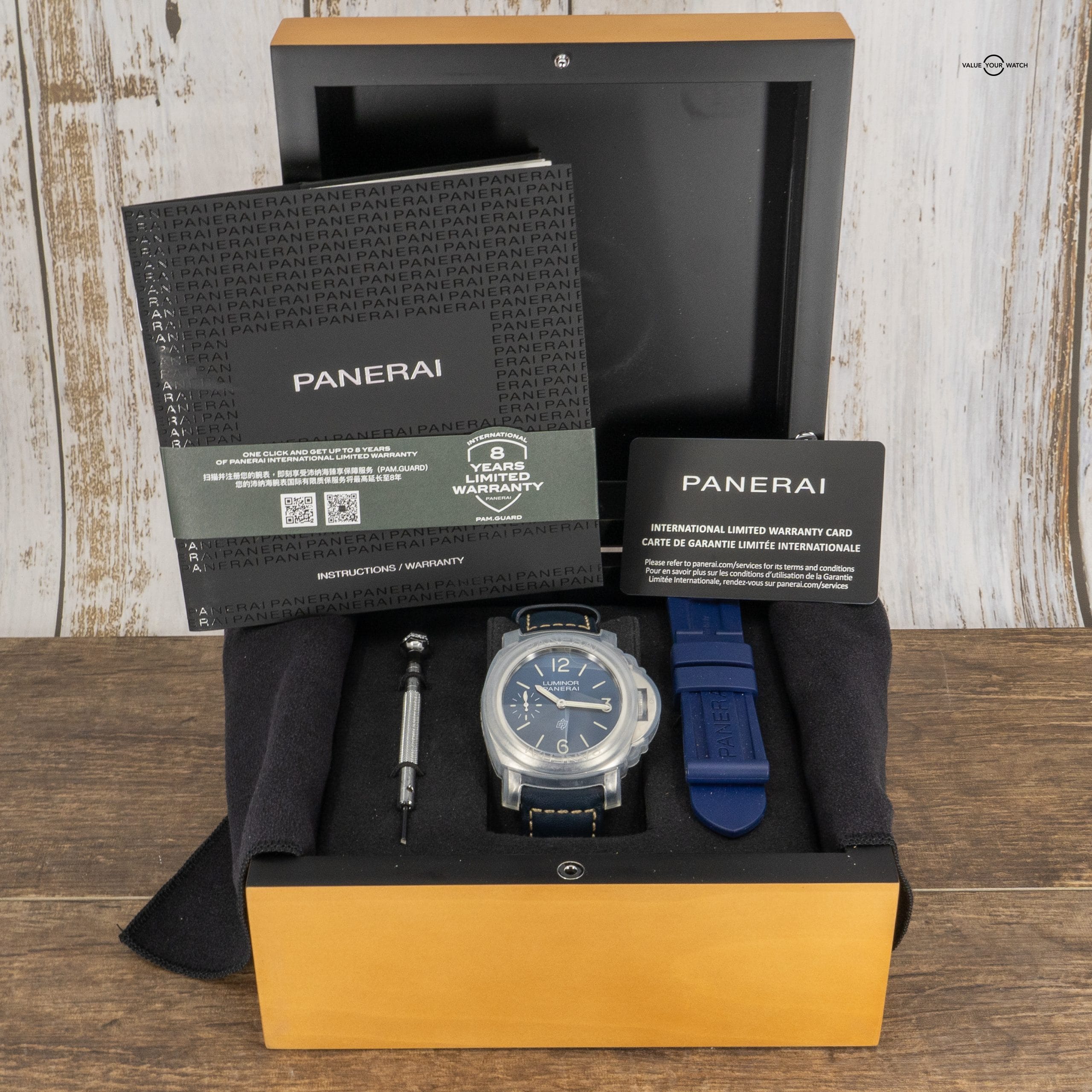 Panerai Luminor Blu Mare Steel Blue Dial Mens Watch PAM 1085 Box/Papers/Warranty
