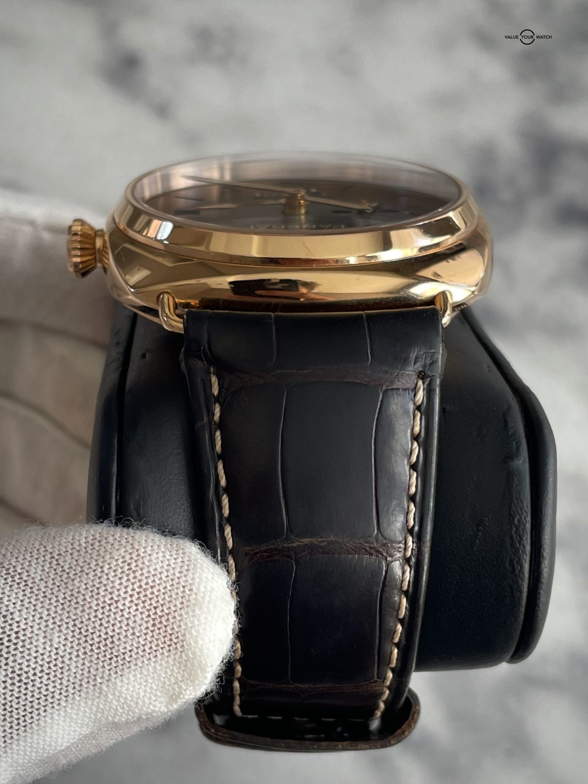 Condition – This watch is in excellent pre-owned condition. The rose gold case has never been polished. The leather alligator band shows very minor signs of wear and is in excellent condition as well. When not being worn, it was kept in the safe with the other pieces in my collection.