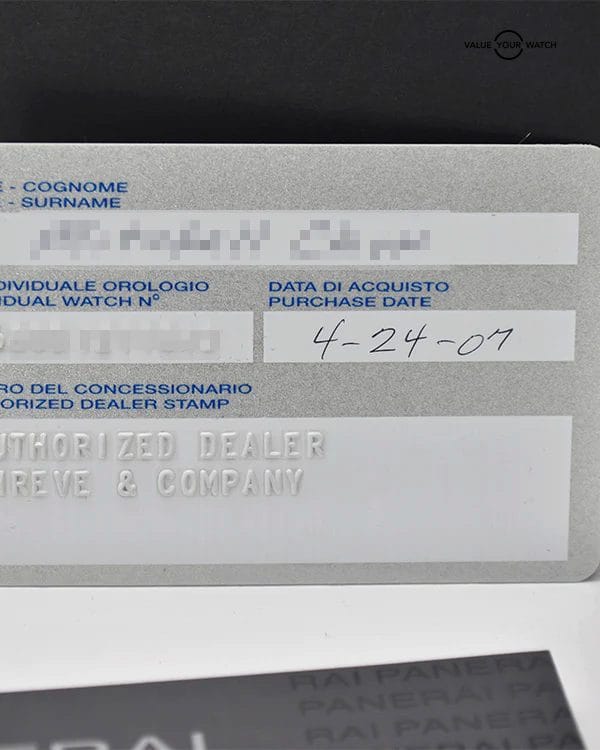 PAM 242 – Radiomir Steel GMT – 2 Time Zones Steel on Strap with Black Dial- Limited to 300 pcs 169/300 Full-Set with book, card, wooden box, blue and brown Panerai leather strap.