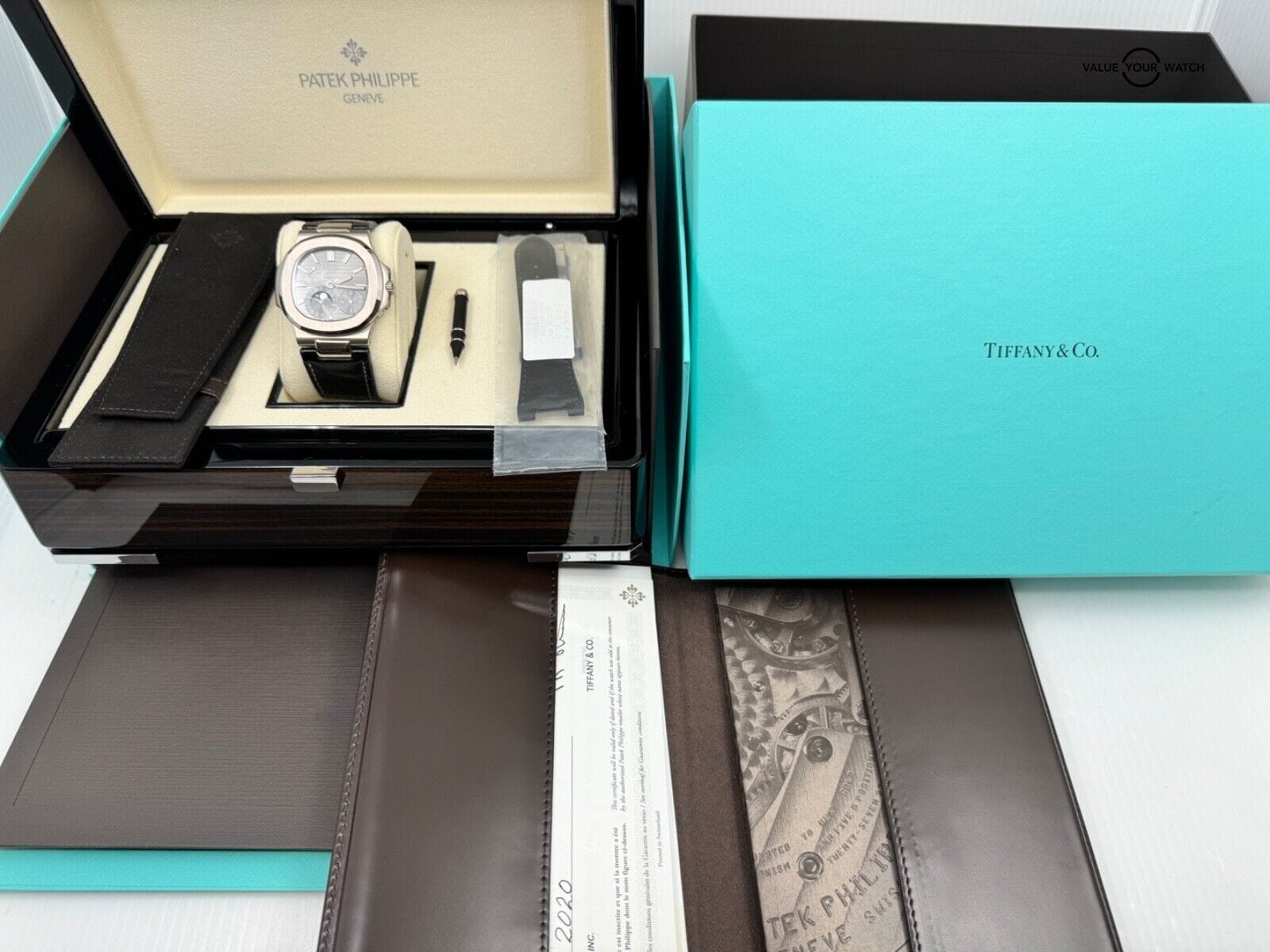2020 Tiffany & Co. Stamped Patek Philippe Box Papers White Gold 5712G-001