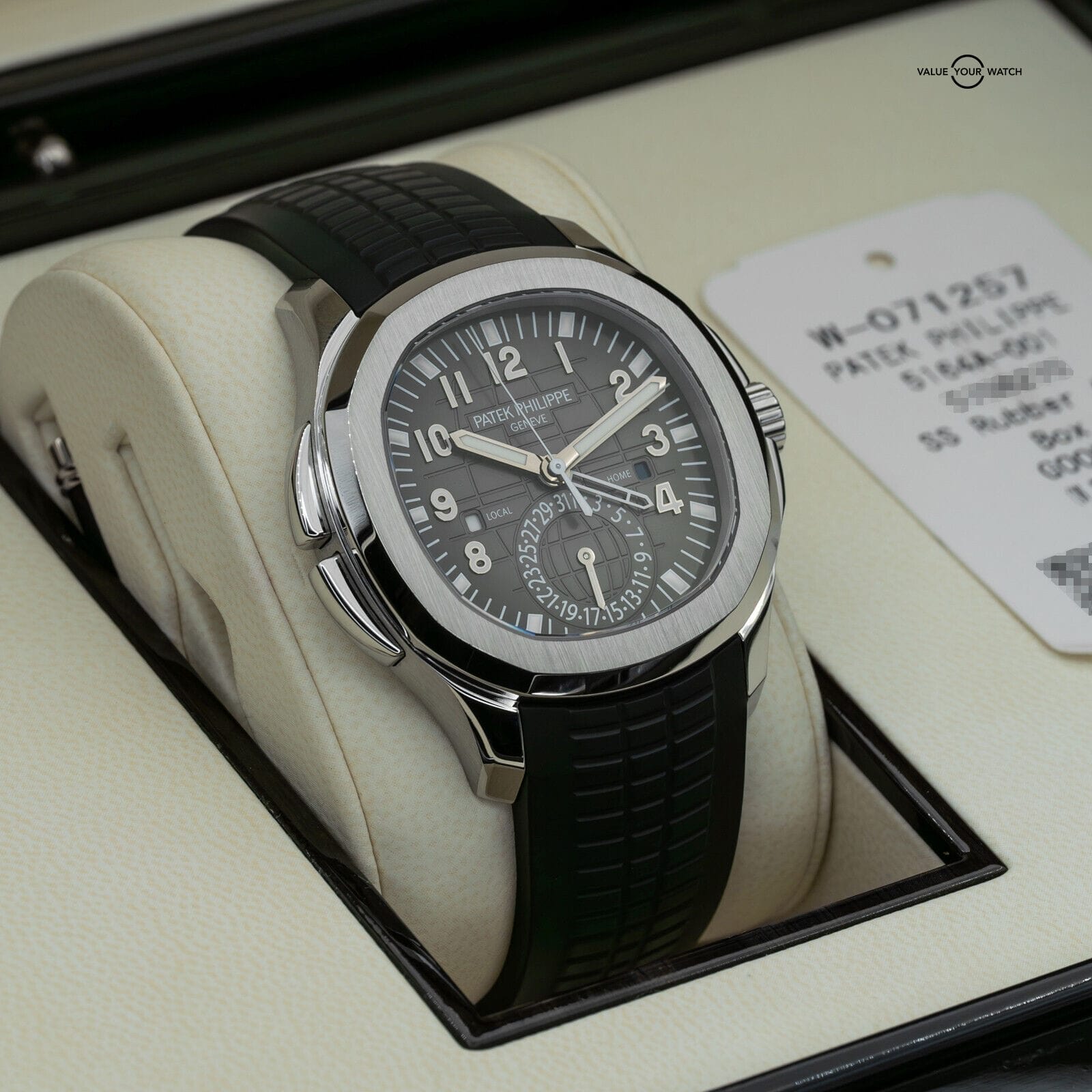 Patek Philippe Aquanaut Travel Time 5164A Steel Black Dial 40.8mm MINT Condition 5164A-001