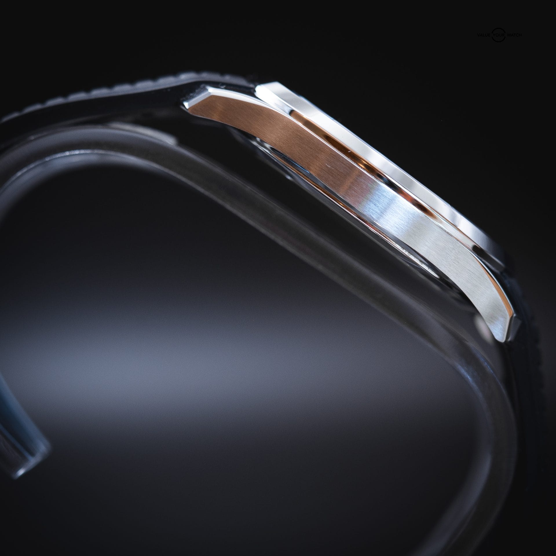 The watch is in like-new with no signs of wear. Included with this full set are the inner and outer boxes, box sleeve, Patek certification, booklets, and original delivery box with padding, and the stainless steel bracelet.