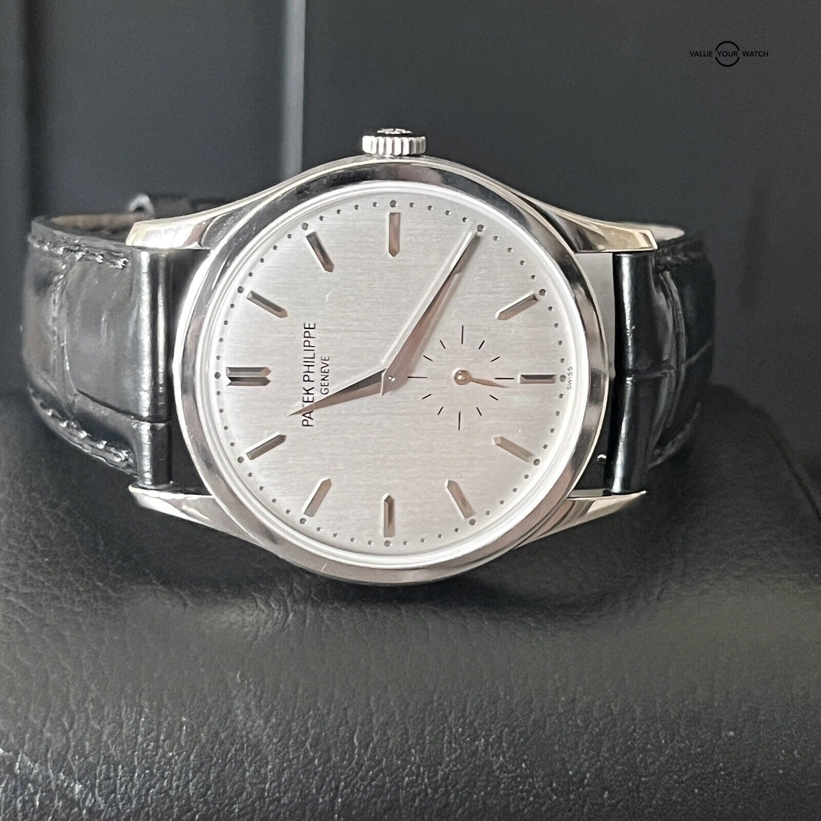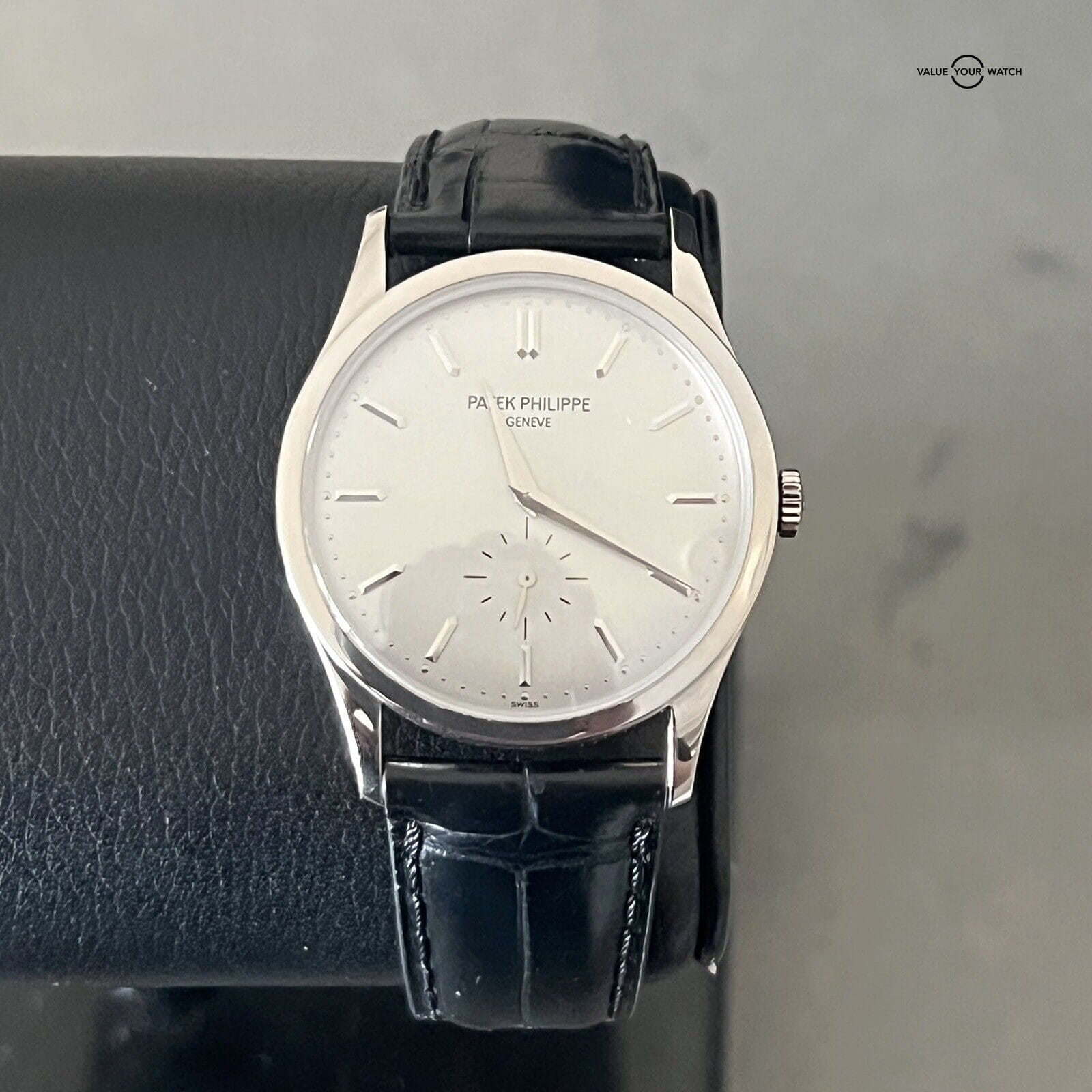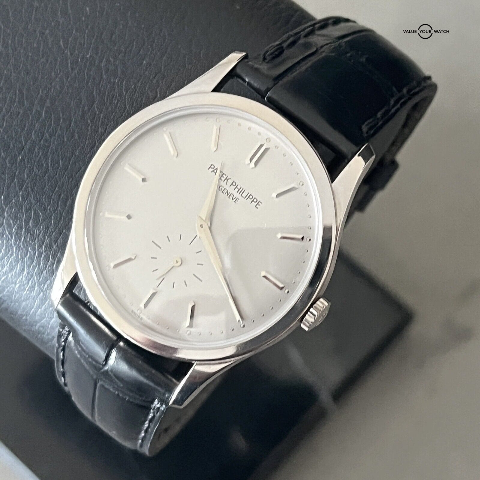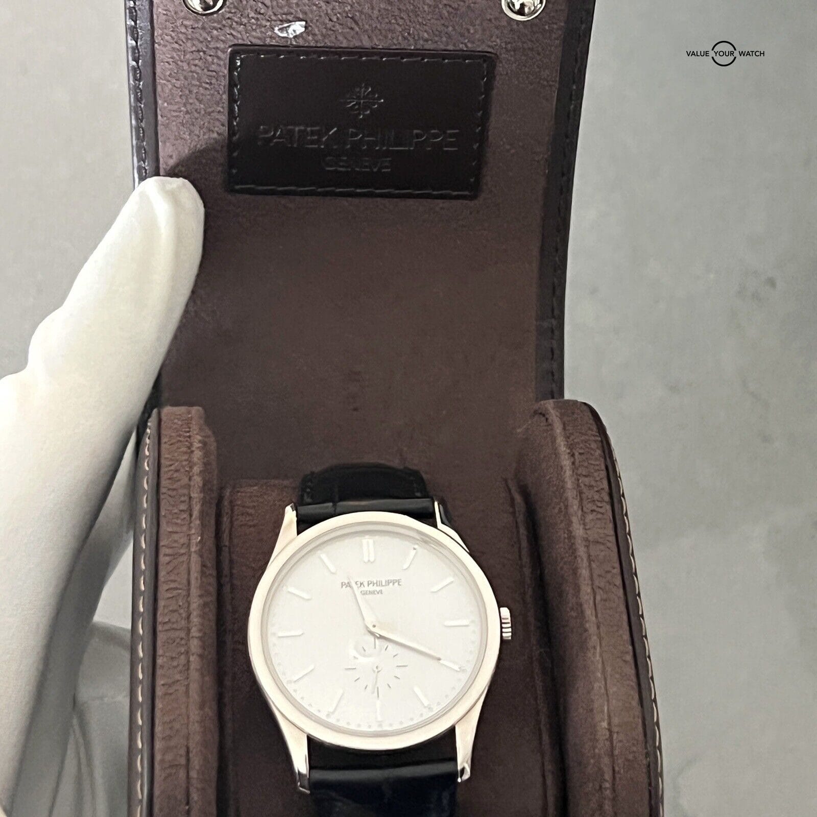 Specification: Patek Philippe 5196G 37mm 18k White Gold Calatrava Black Leather Watch Box MINT
