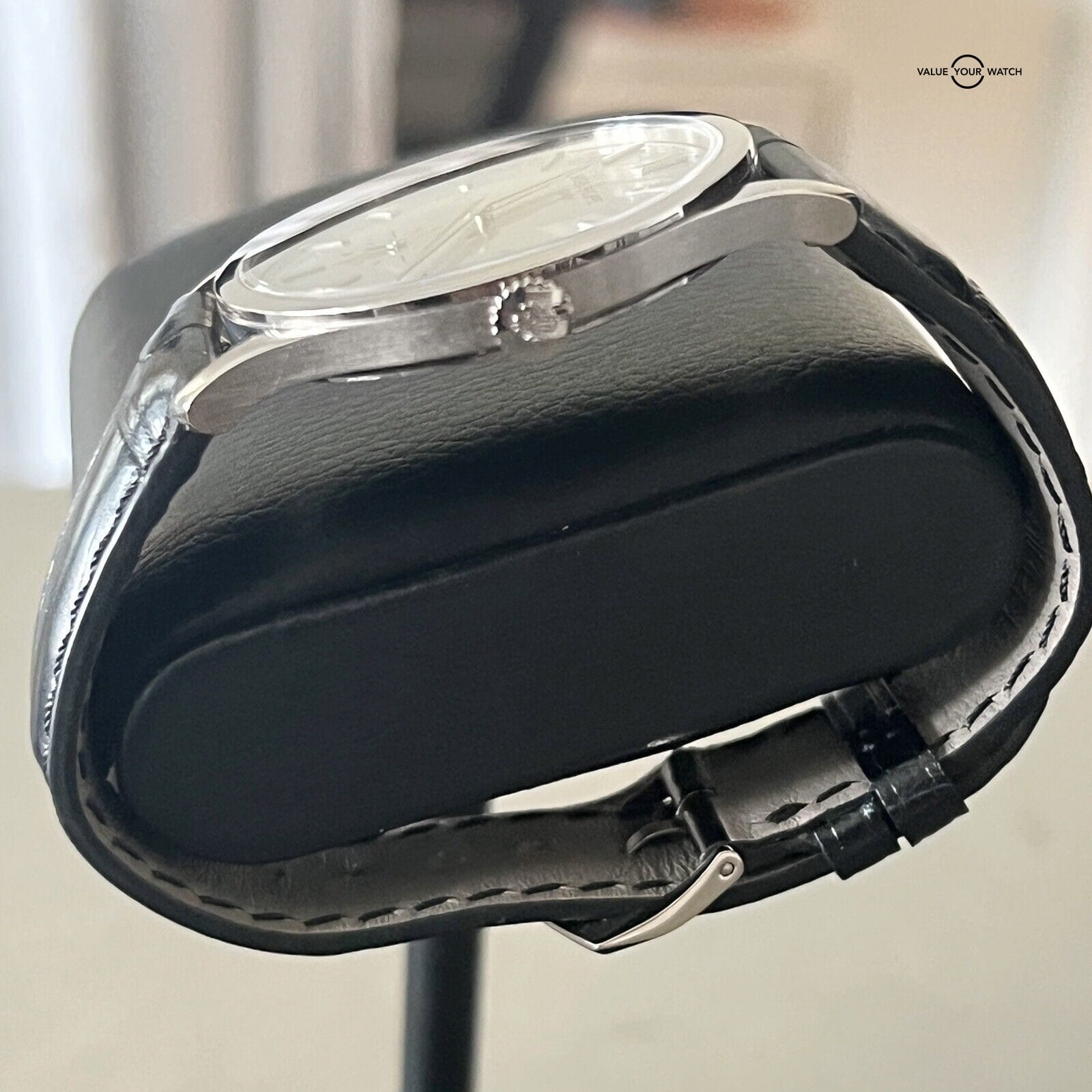 Completing the ensemble is a high-quality black alligator leather strap, which not only enhances comfort but also adds to the overall elegance of the watch.