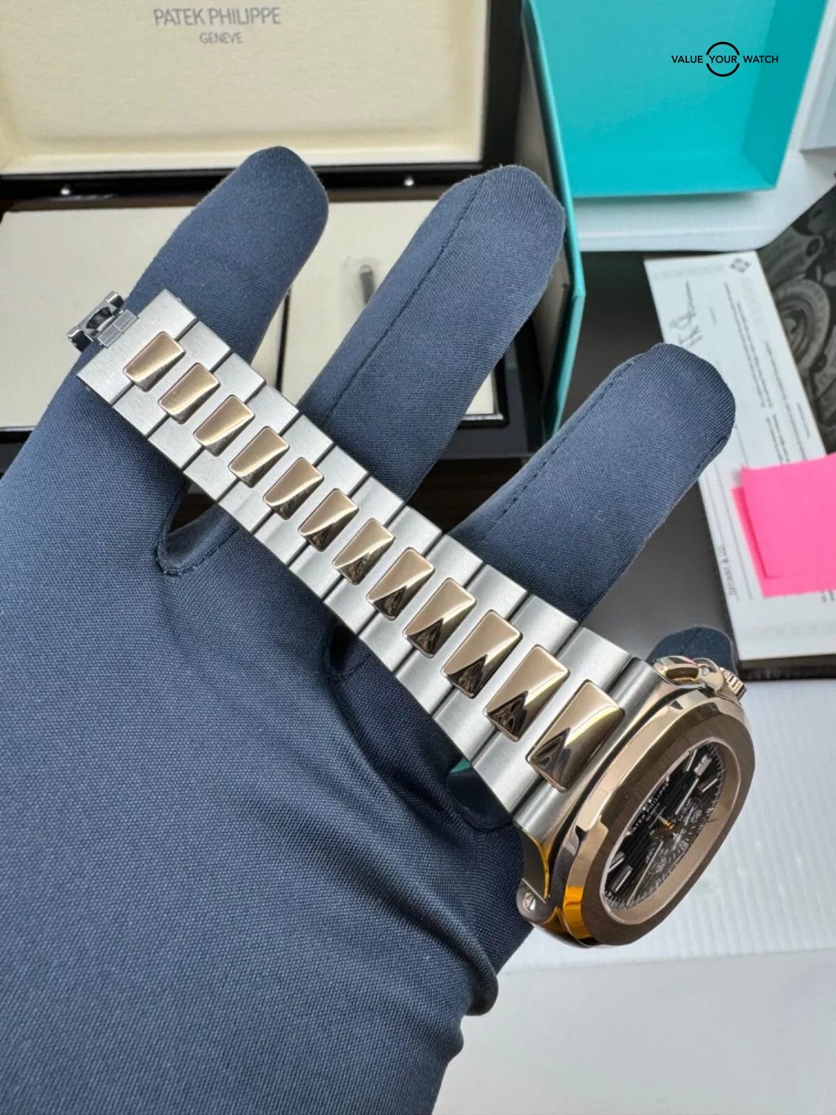 2021 Tiffany Box Papers Patek Philippe Nautilus Chronograph Rose Steel Blue Dial