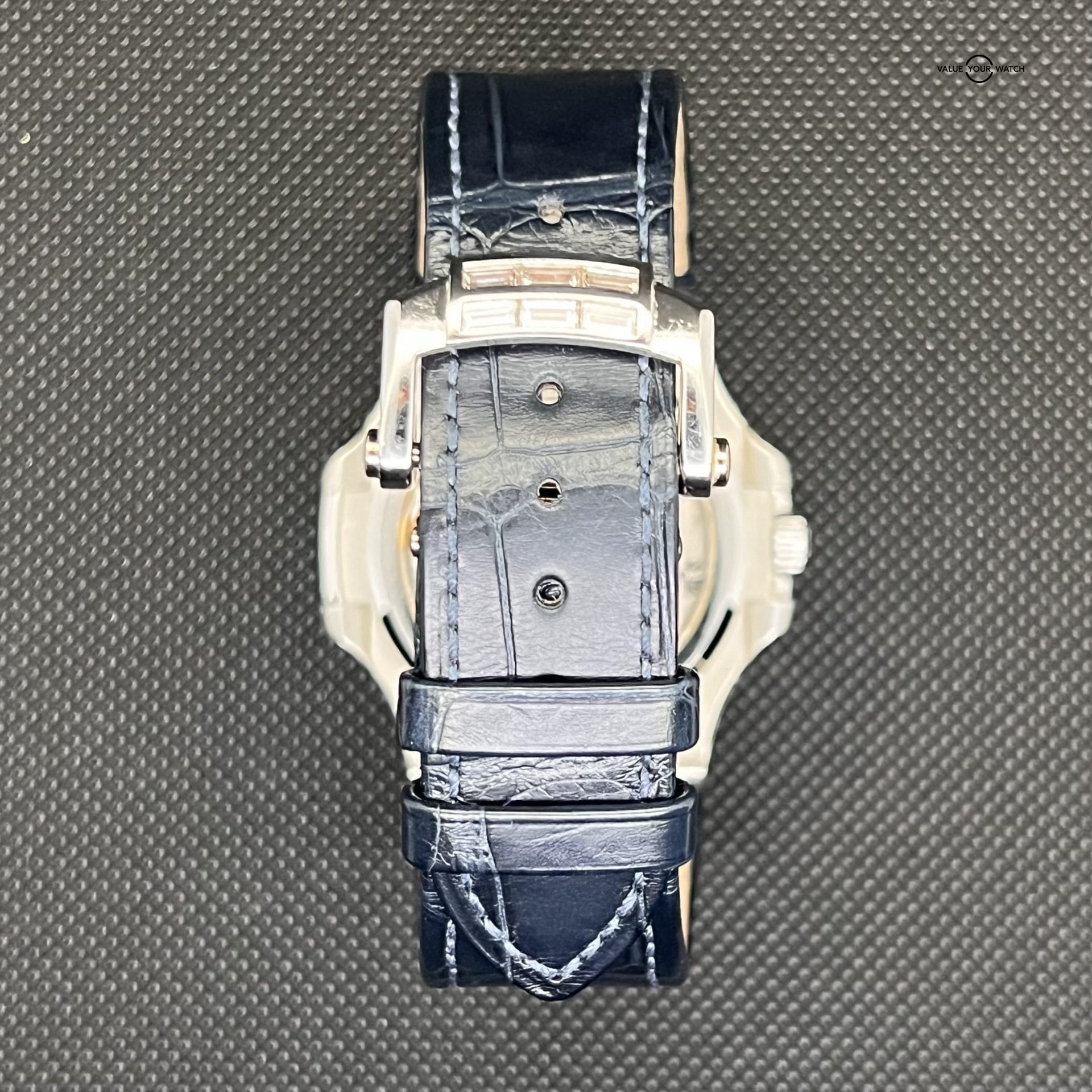 The King of Watches! This beautiful blue dial, white gold with factory baguette diamond bezel and end plots Nautilus comes as a complete set dated 10/18/2015. It’s in PRISTINE, original, unpolished condition with little to no signs of wear. The strap is like new, and it’s running perfectly. Absolutely ready to rock a new wrist!