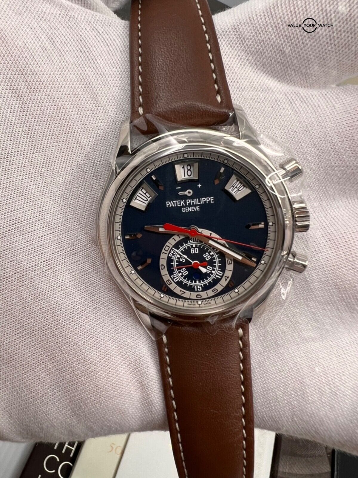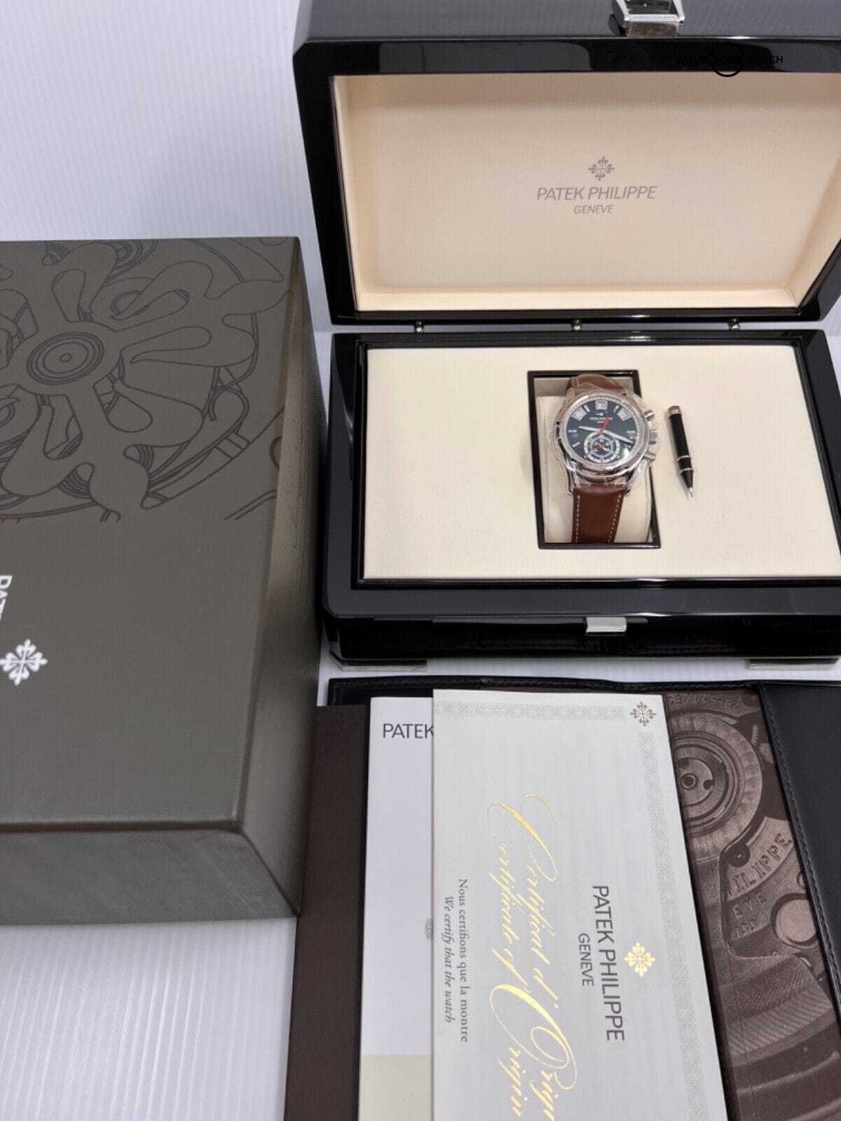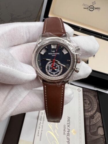 Specification: Patek Philippe Blue Dial Annual Calendar Chronograph 40.5mm 18k White Gold 5960g