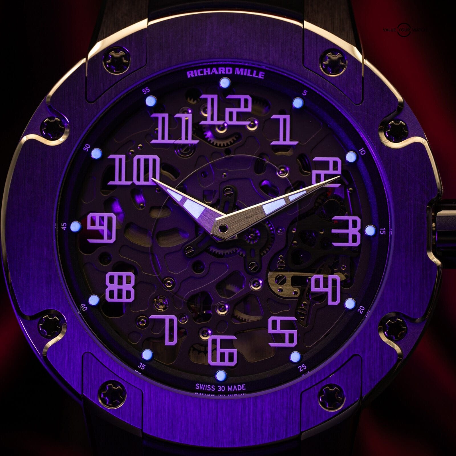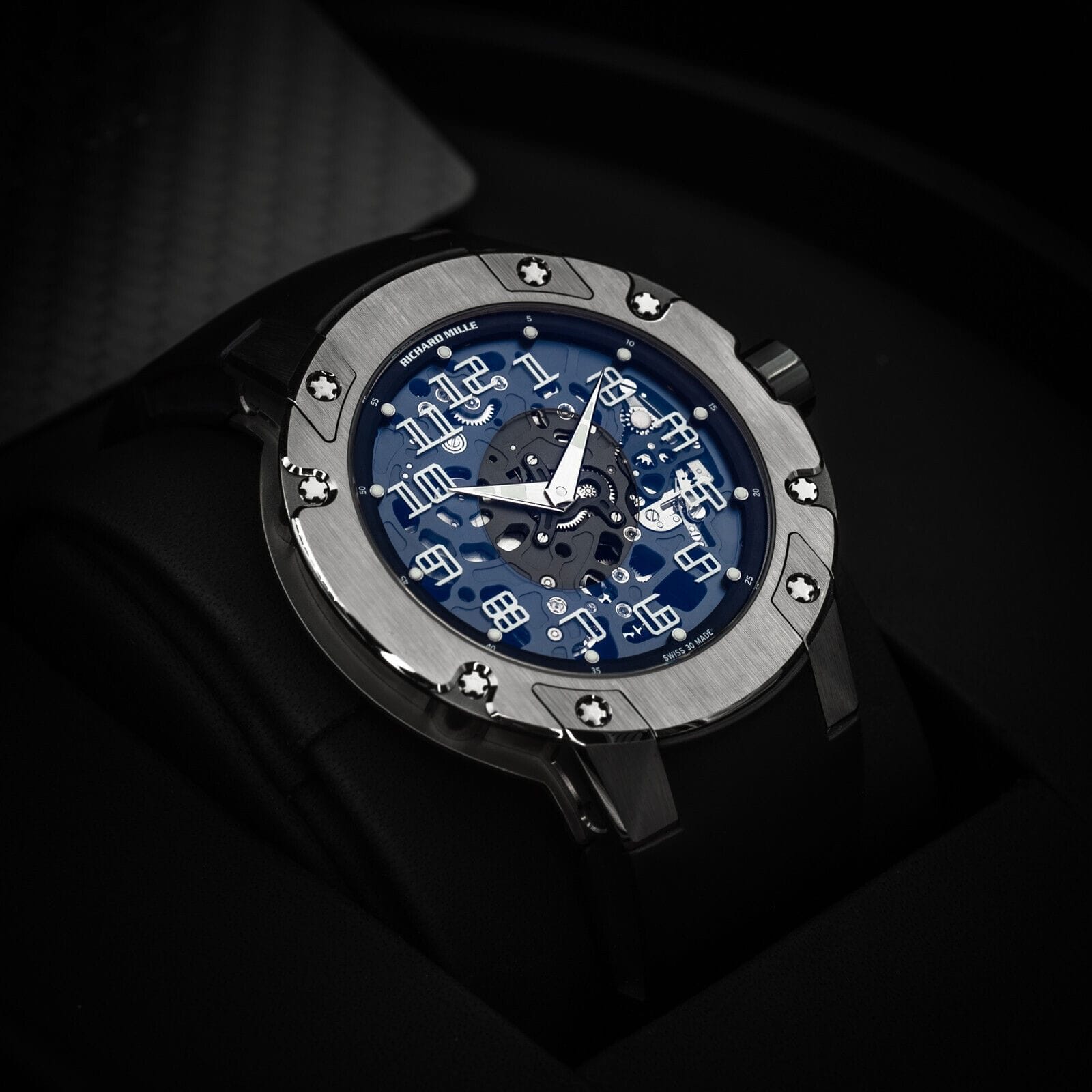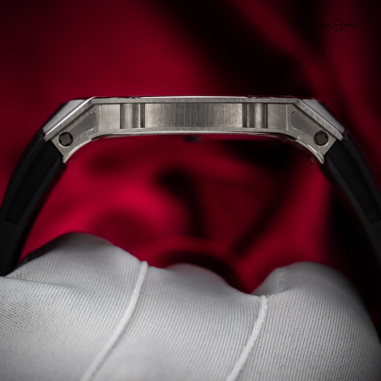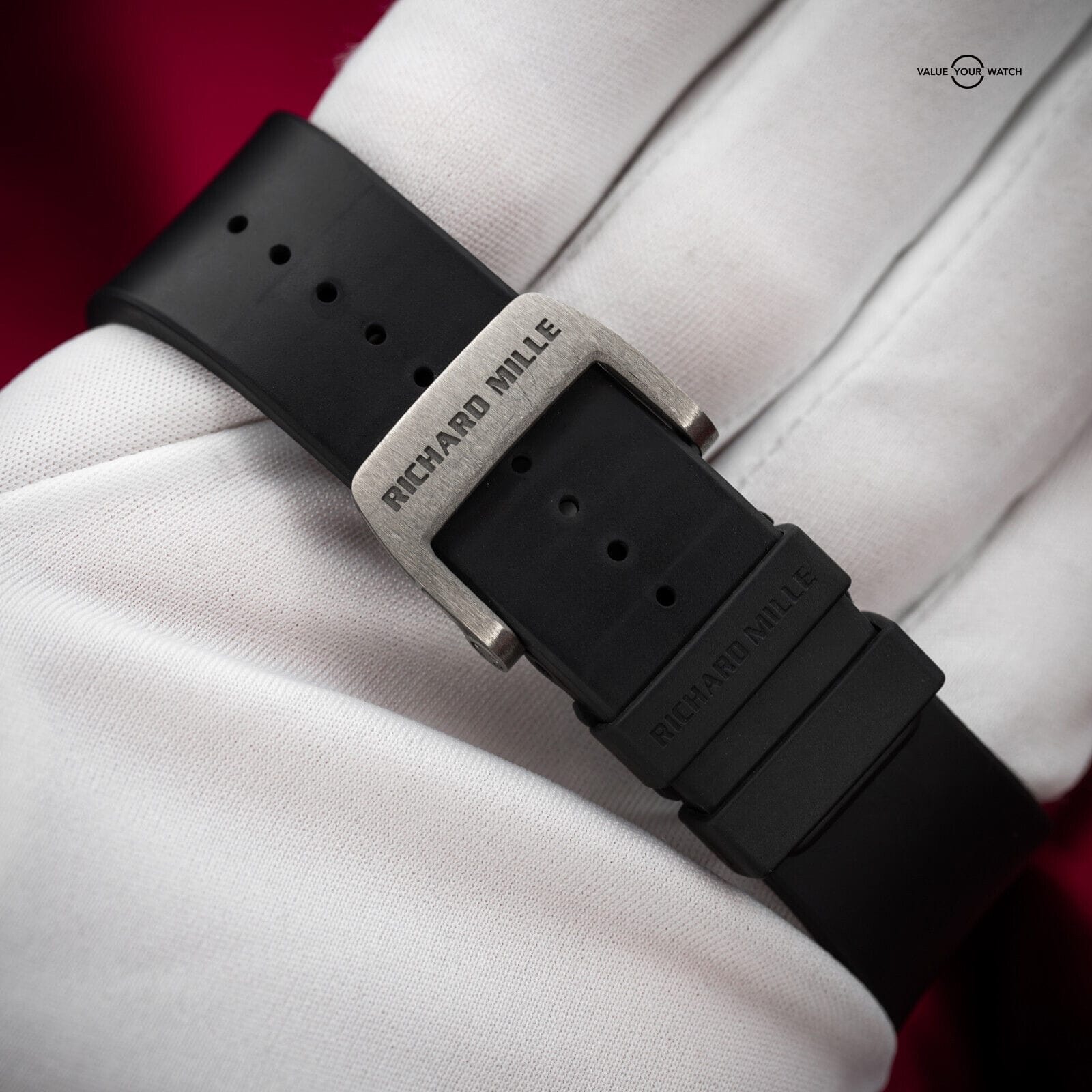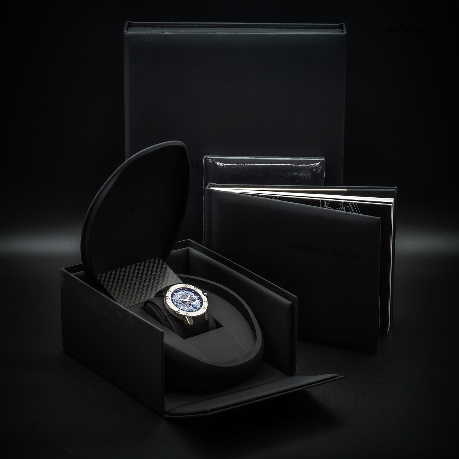 This timepiece was purchased from the Richard Mille boutique in Chicago in November 2021, so it is under warranty until November 2026. It comes as a complete set with all boxes, booklets, and paperwork. It presents in excellent overall condition, with barely any signs of wear. Please reference the photos for the most accurate representation of the condition of the watch – I do my best to emphasize, rather than diminish any flaws through my macro photography.