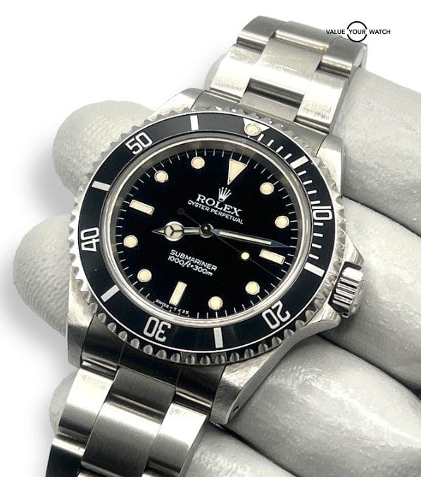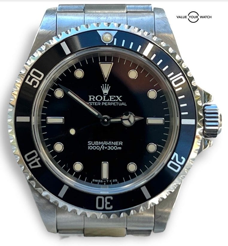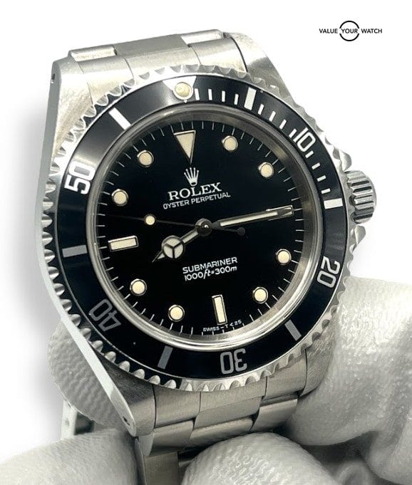 1996 T Serial Rolex Submariner Date 14060 No-date. 40mm case. Serviced and polished in January 2023. Hairline scratches can be seen upon close visual inspection or under magnification. As nice of a used 14060 you’ll see considering its age.11 links included.