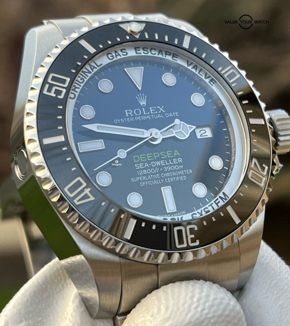 For your consideration is this complete set, minty condition Rolex Sea-Dweller Deepsea 116660 “James Cameron” with 14 months of Rolex factory warranty remaining!