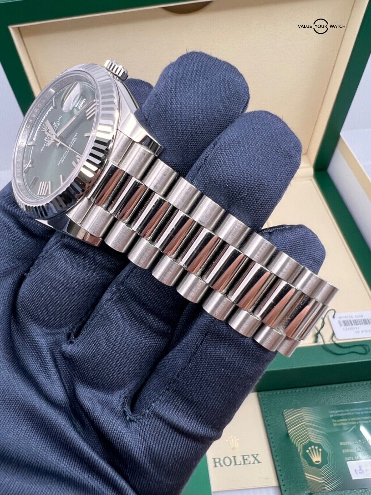 Guide to Buying and Selling 2022 Fluted Platinum Rolex Day-Date 40 228236 President Olive Green Roman Online