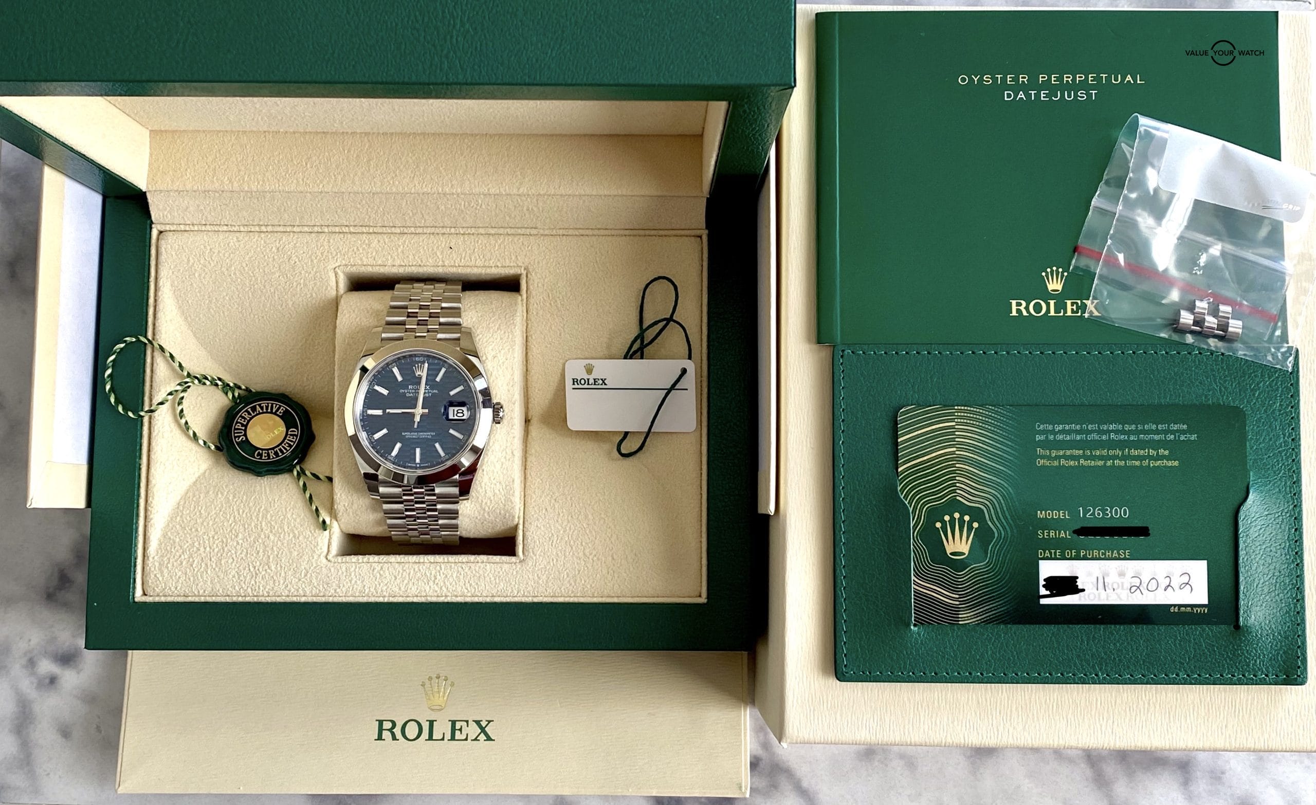 Hey everyone! I would like to offer you my 2022 Rolex Datejust 41mm Blue Motif Dial on Jubilee Bracelet 126300