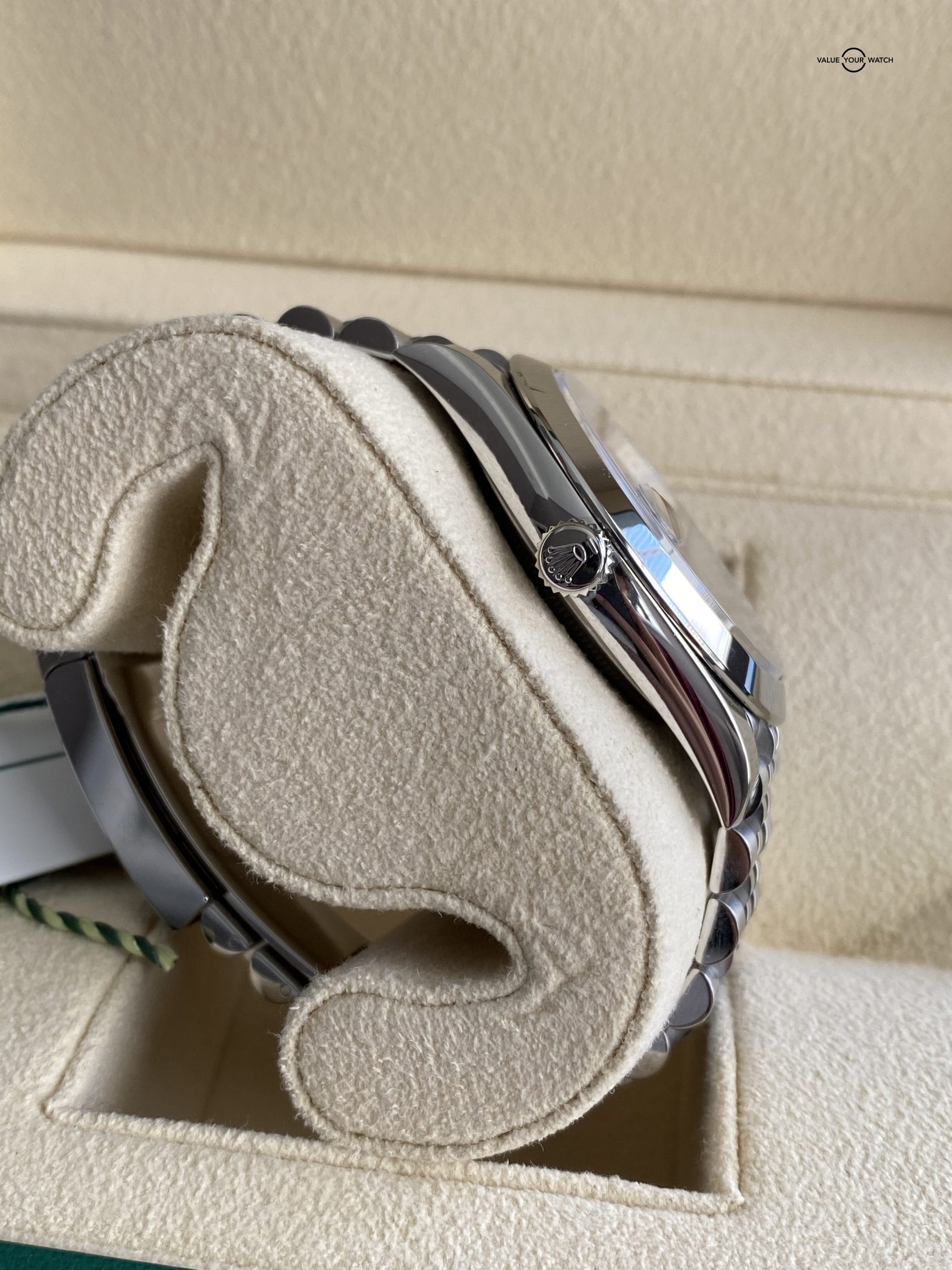 This watch comes complete with – White Outer Rolex Box, Green Rolex Presentation Box, Rolex Warranty Card, Rolex Manual Booklet, and Original Rolex Tags