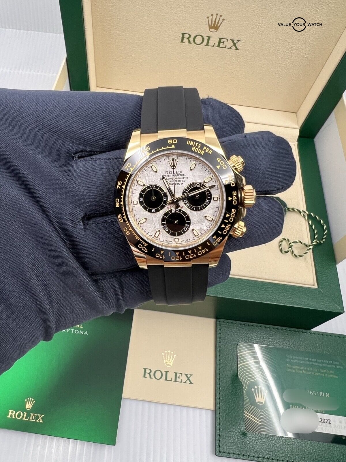 Accurate Description: Provide a detailed and accurate description of the 2022 Rolex Daytona 18k Yellow Gold Meteorite Dial Oysterflex, including its condition, specifications, and any notable features. Highlight the watch’s authenticity, provenance, and unique aspects to attract potential buyers.