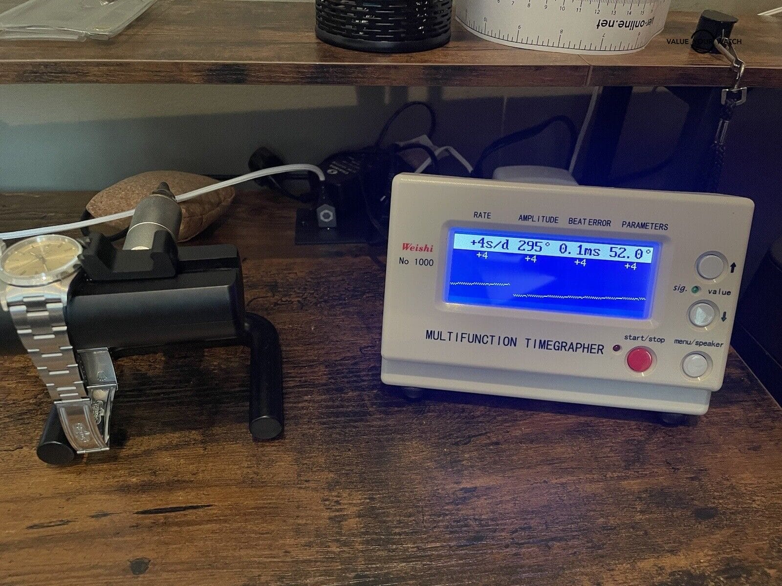 – Has your usual wear throughout. Moderate Scratches in case and light marks in bracelet, bracelet is tight and watch runs strong!
