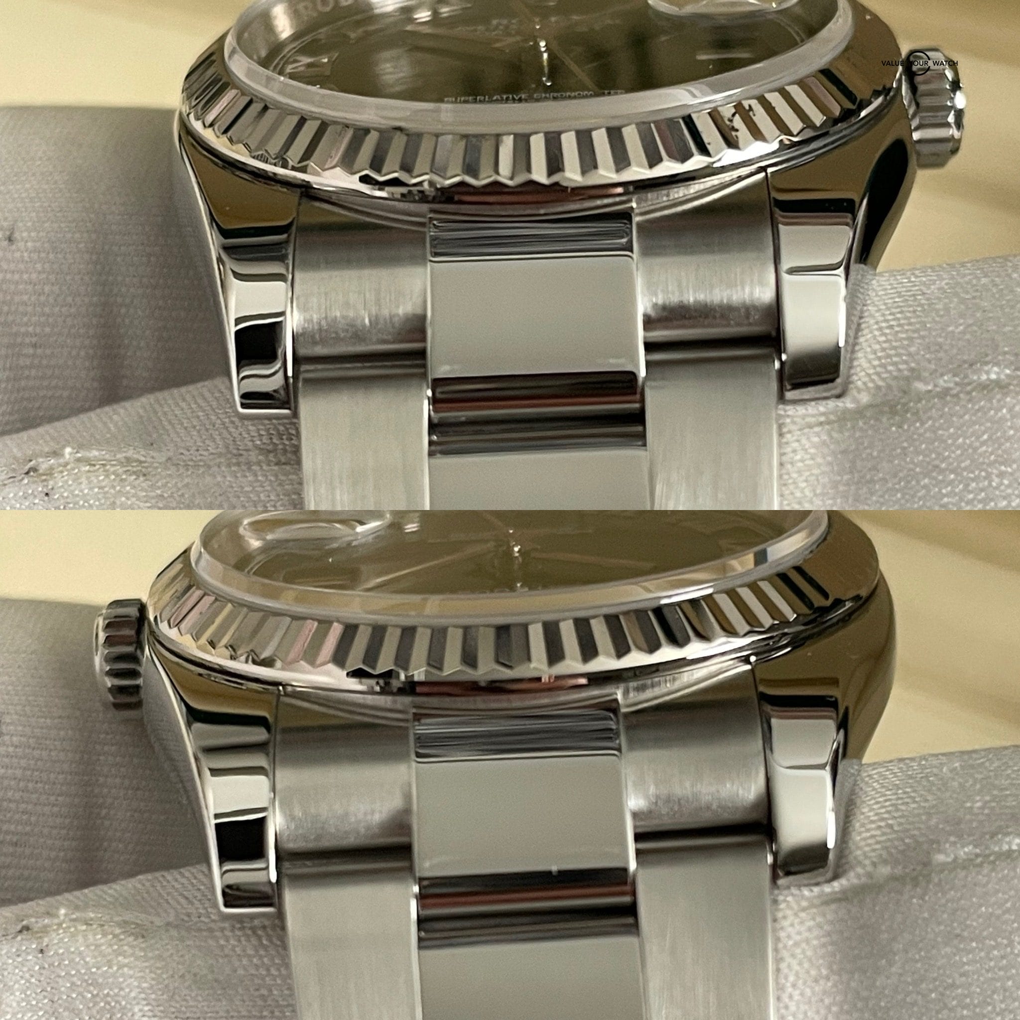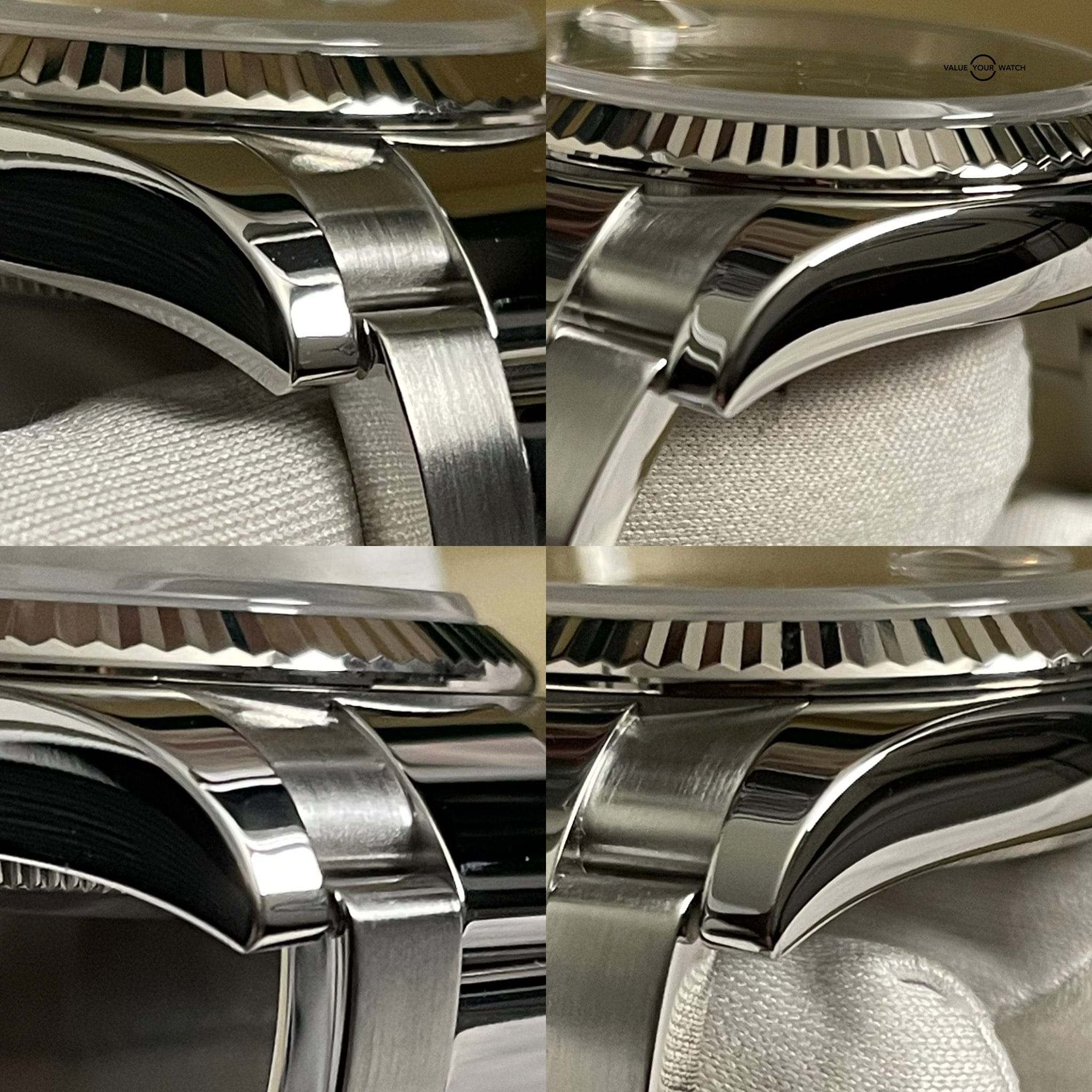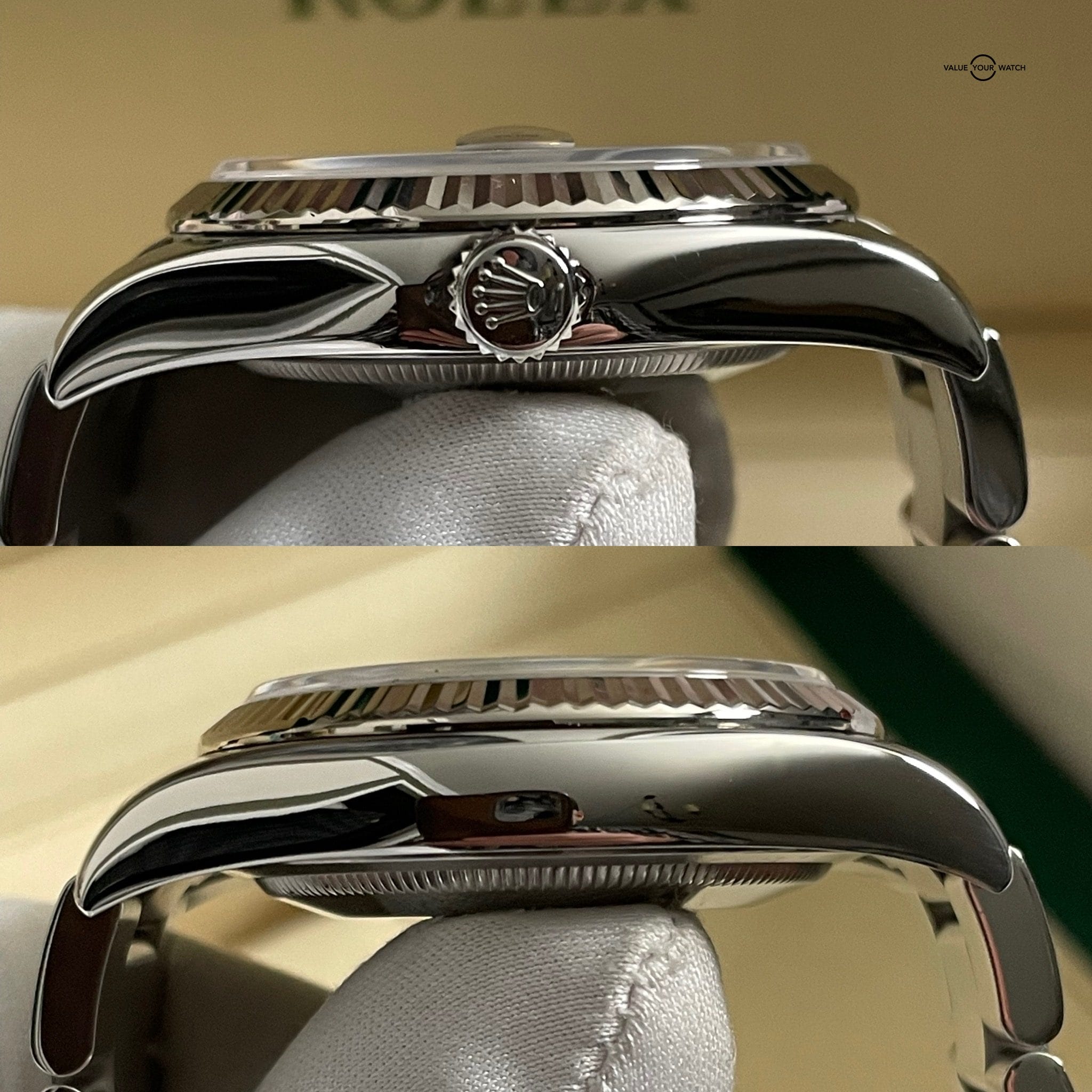 Pre-owned, fresh light polish and looking incredible, with no noticeable wear at all. Crystal, case bracelet and clasp are in impeccable condition! Watch had a single owner and was purchased brand new from Rolex Authorized Dealer in 2015. Comes as a complete full set with box, papers, warranty card, and the extra bits you’d expect from the AD. Don’t miss this one for you or your significant other!