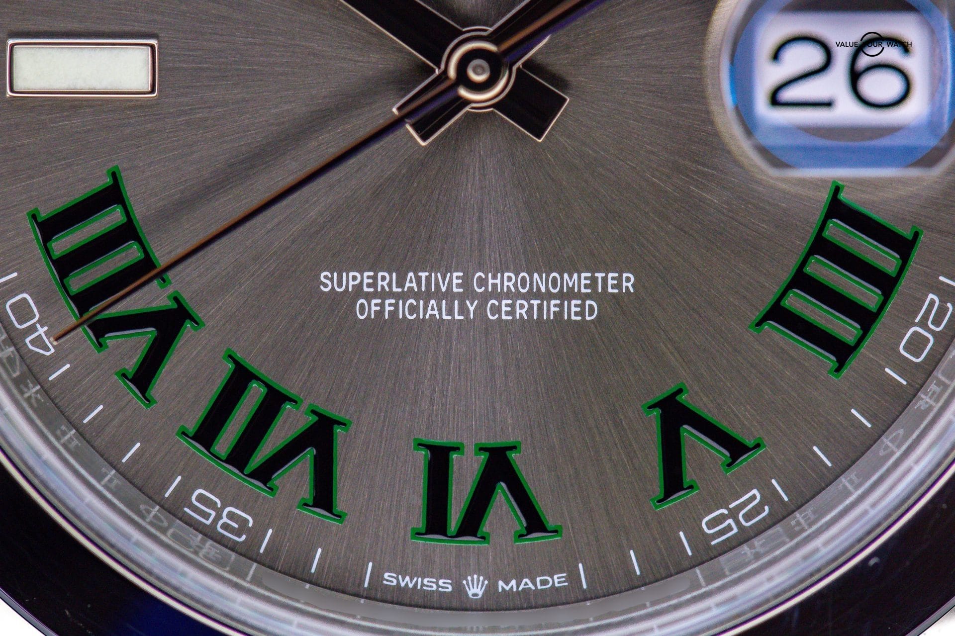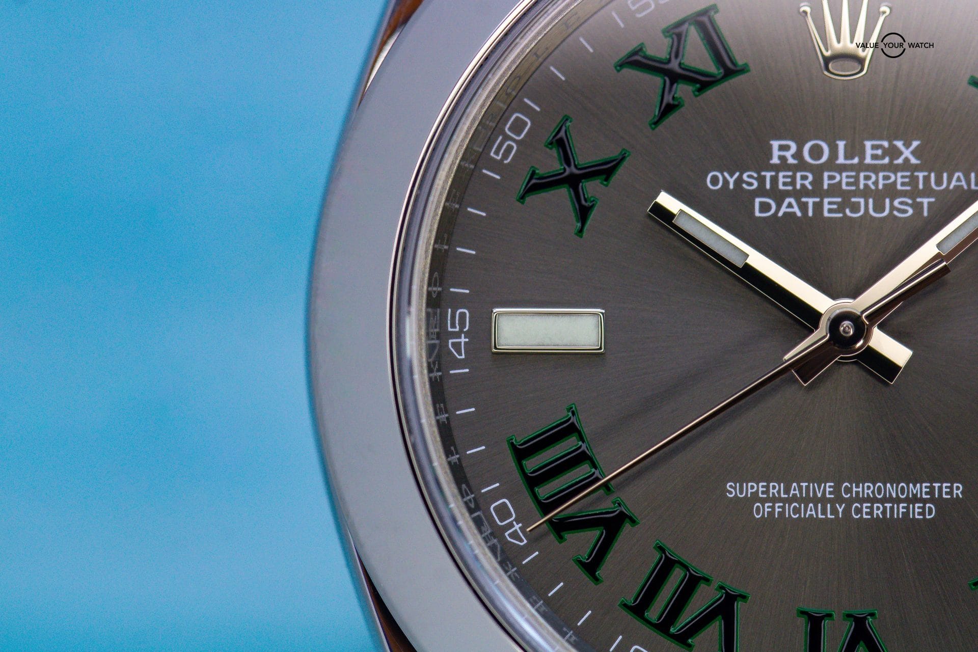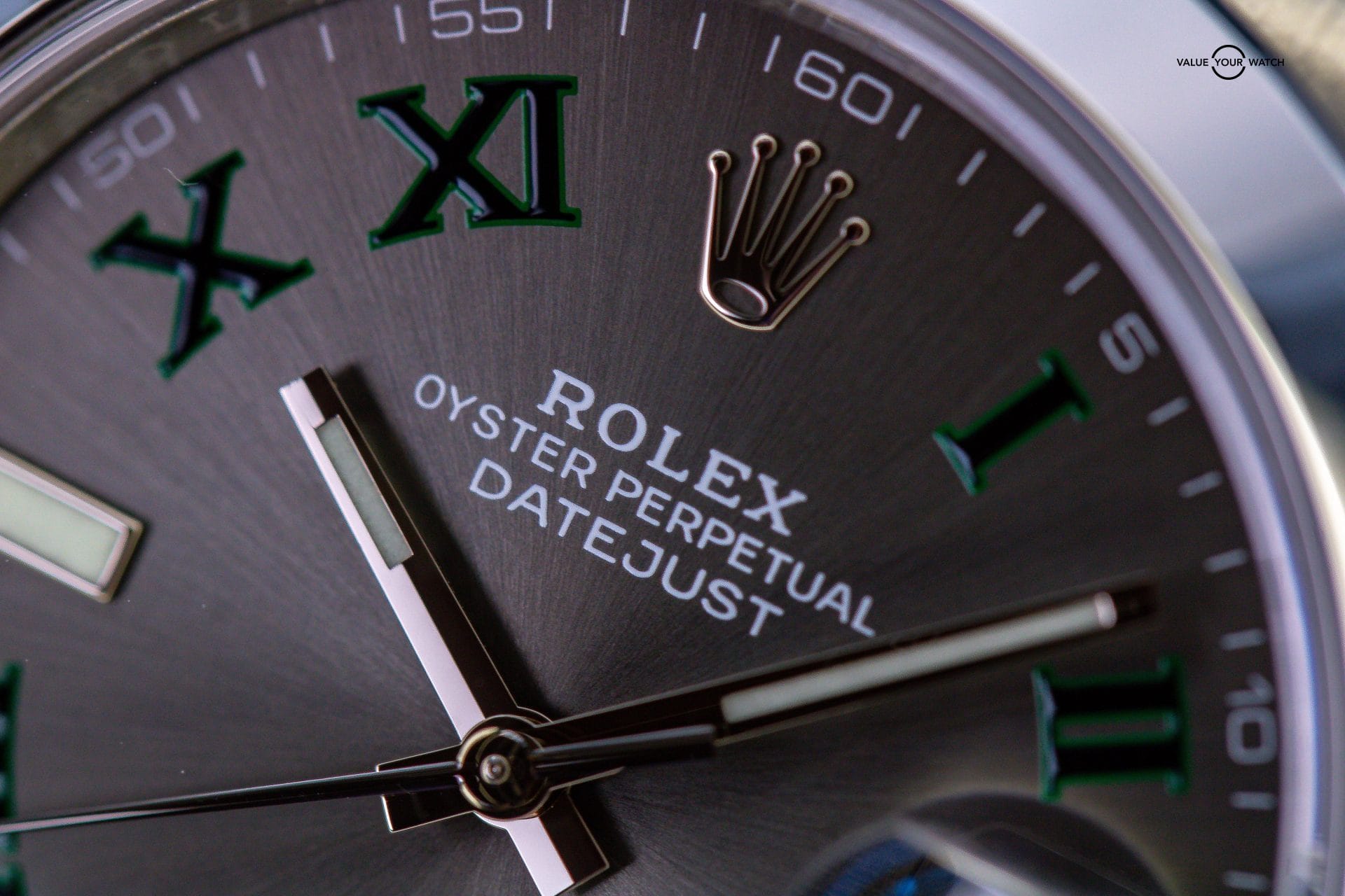 Presenting the Rolex Datejust 41 in its beautiful Wimbledon dial iteration. In 1978, Rolex became the official timekeeper of the Wimbledon Championship. In 2009, Rolex introduced the Wimbledon Dial. Combined with the smooth bezel and Oyster bracelet, this Datejust is altogether sleek, sporty, and timeless.