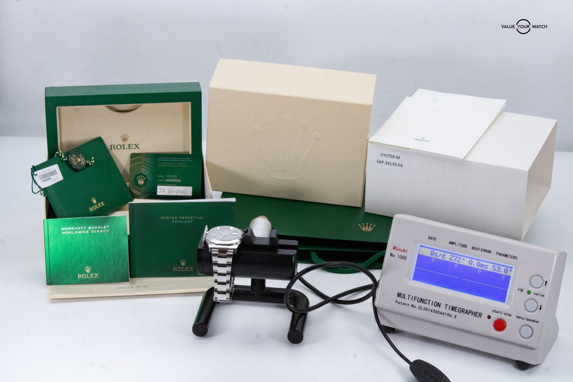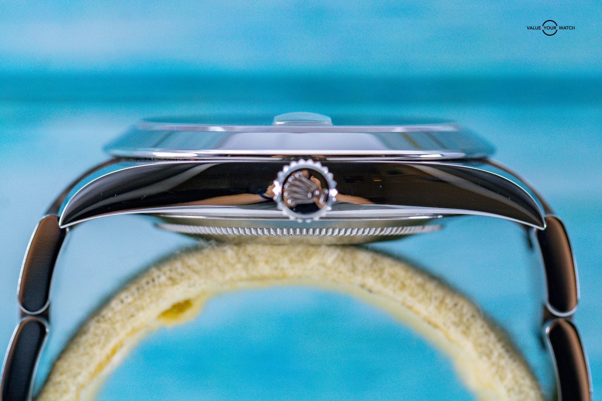CONDITION & CONTENTS: This timepiece is in excellent condition. Please see all photos for an accurate representation. Accompanied with the watch are the inner and outer boxes, the box sleeve, green hang tag, white serialized hang tag, card holder, instruction manual, warranty booklet, warranty card dated Feb 27, 2021, and even a Rolex store bag. The original sales receipt can also be included, with personal information hidden for privacy.