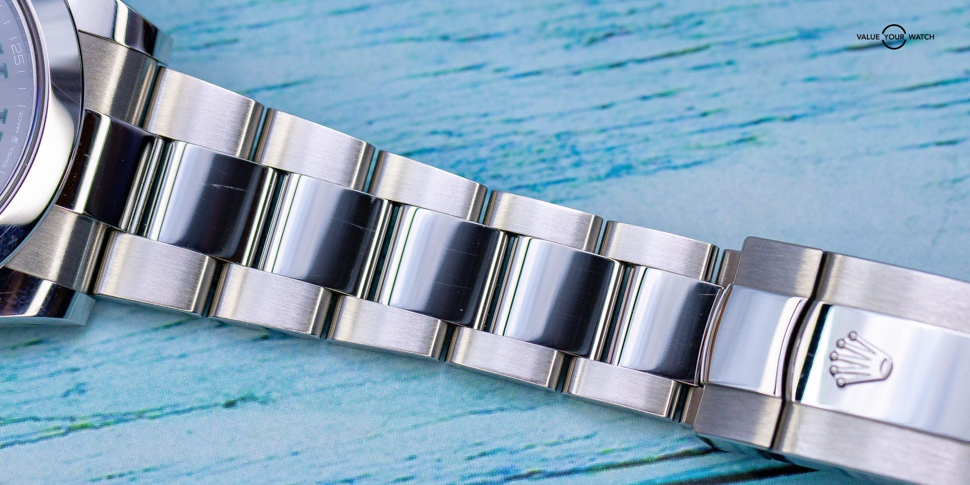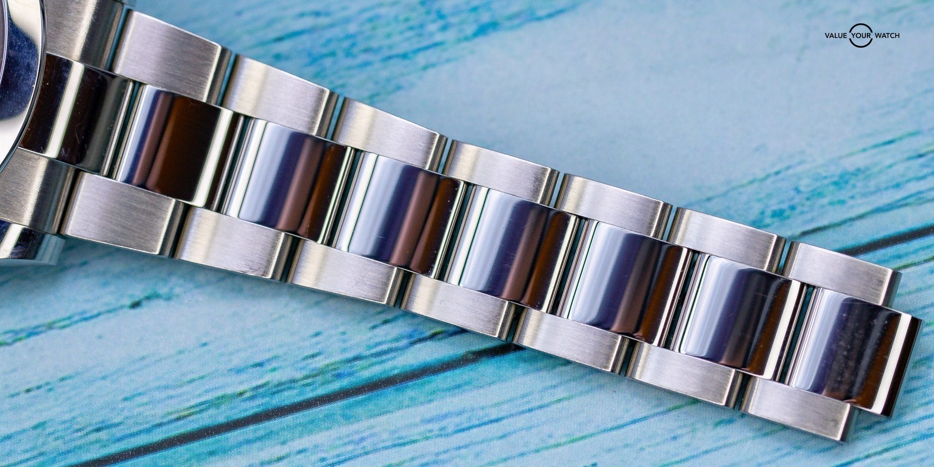 This Rolex Datejust sits at 41mm and will comfortably fit an 8″ wrist.
