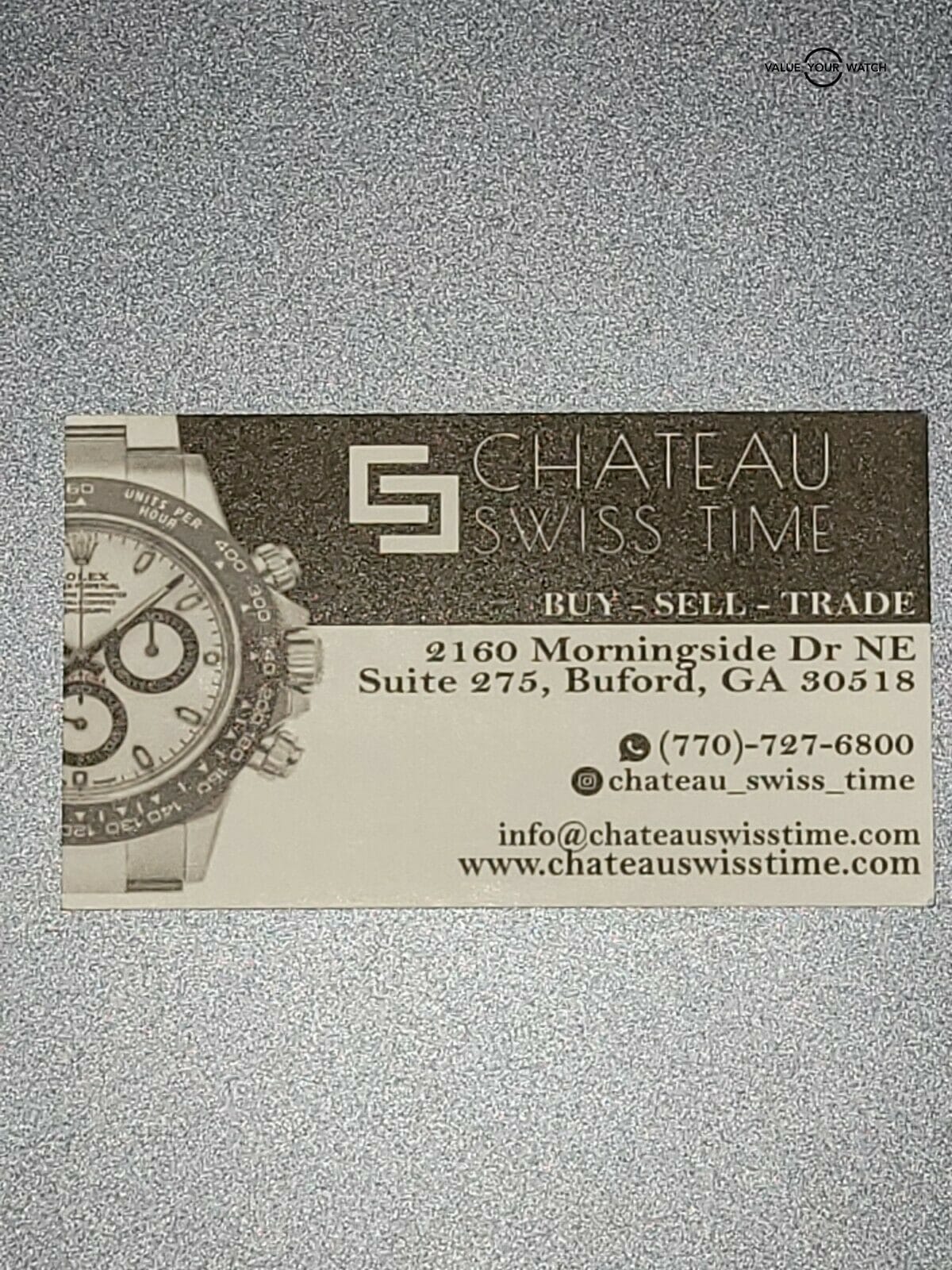 Brought to you by Chateau Swiss Time in Braselton GA. Family owned and operated pre-owned swiss watch retailer. We have been involved in the business of buying, selling and collecting fine timepieces for over 22 years.