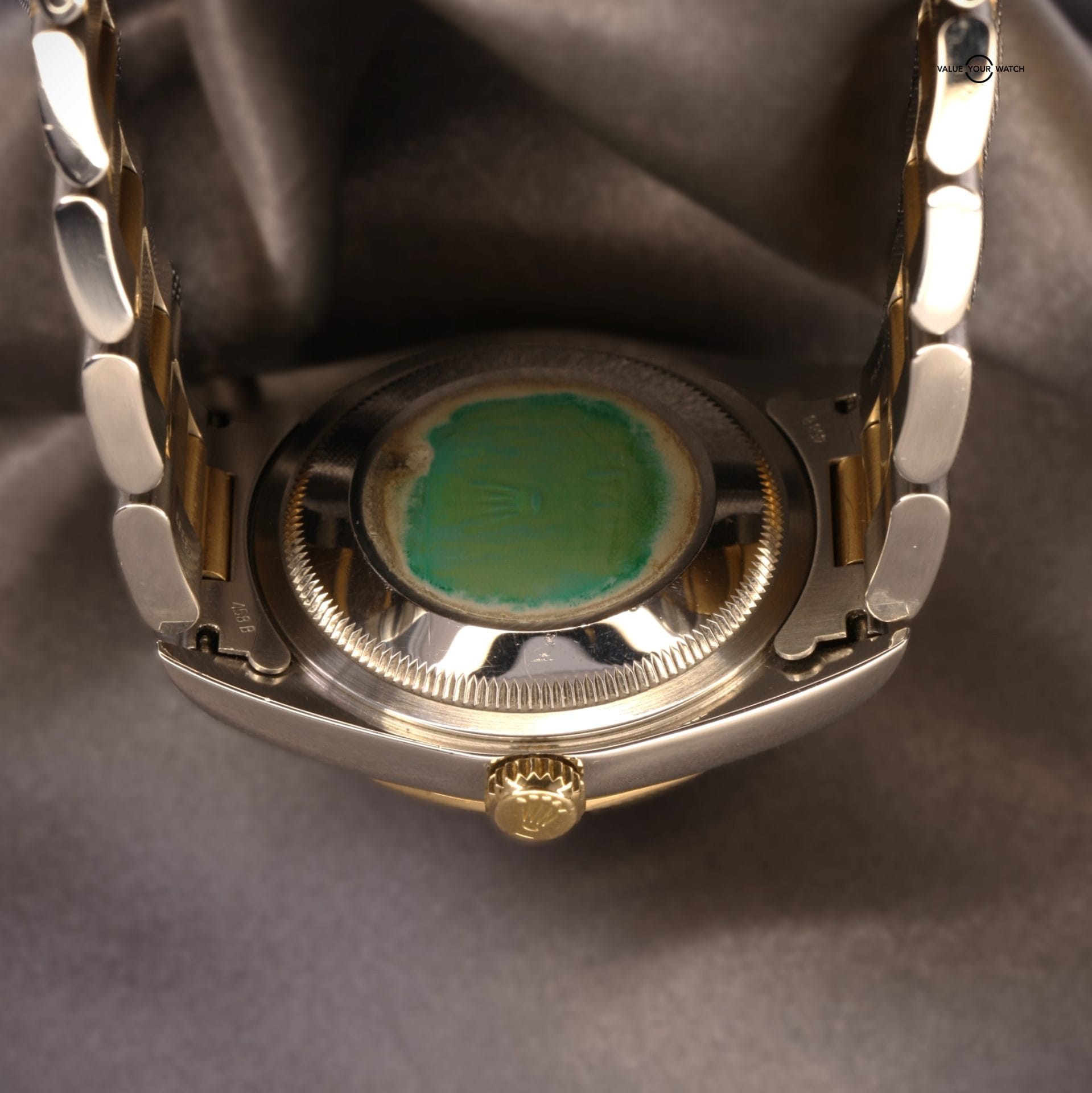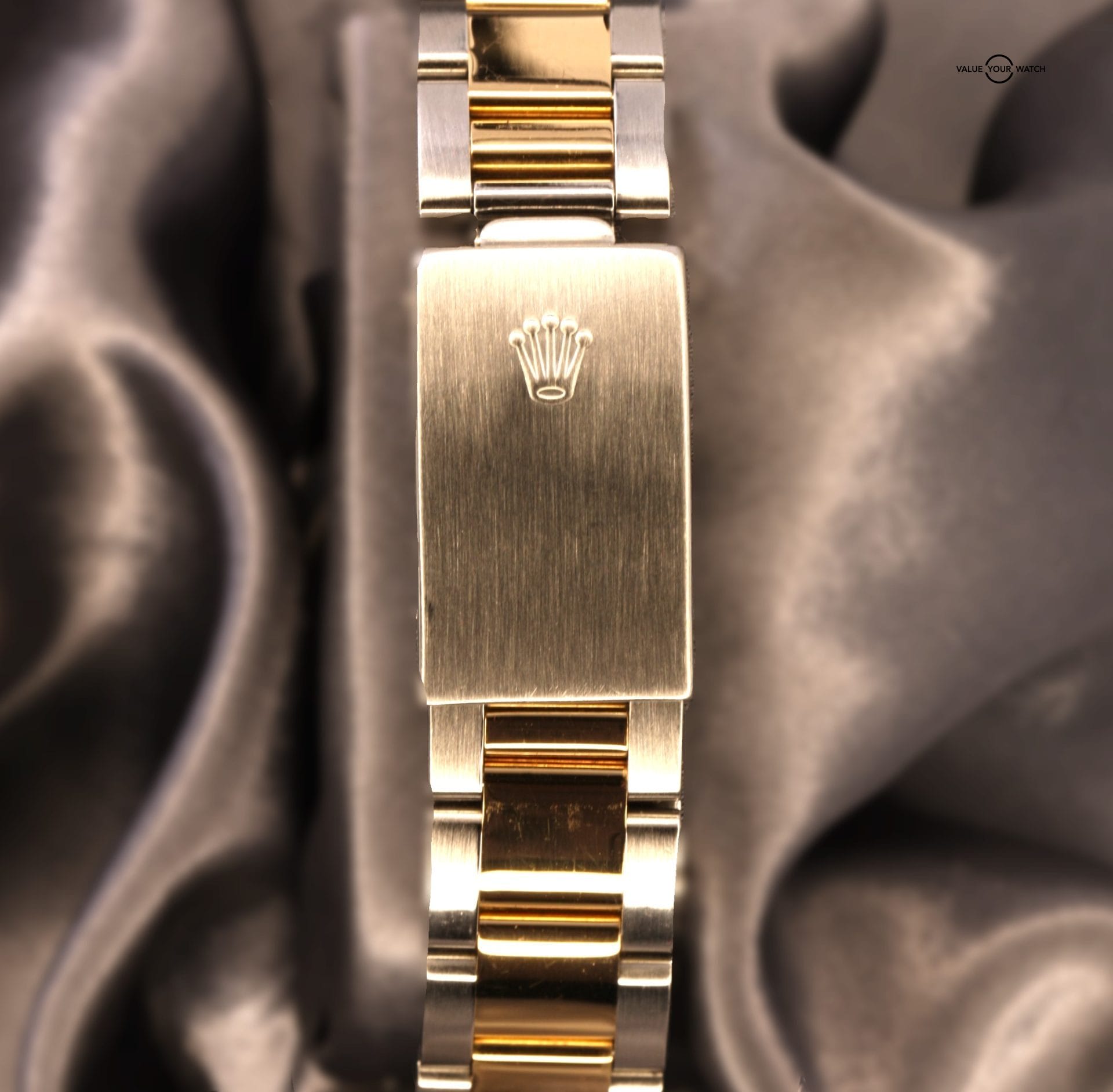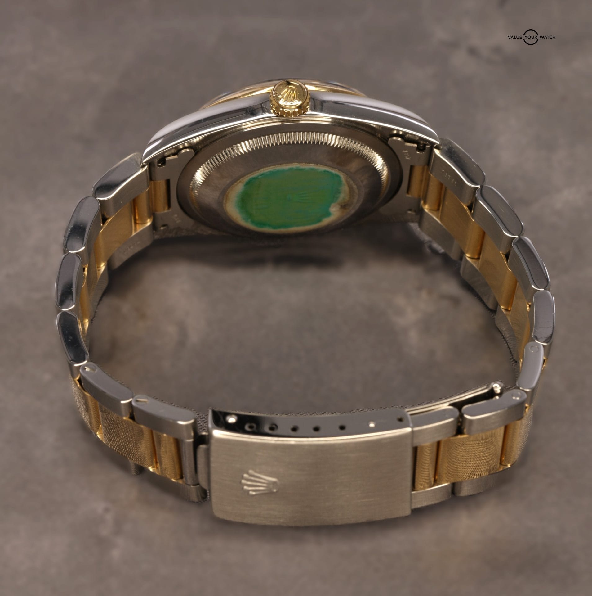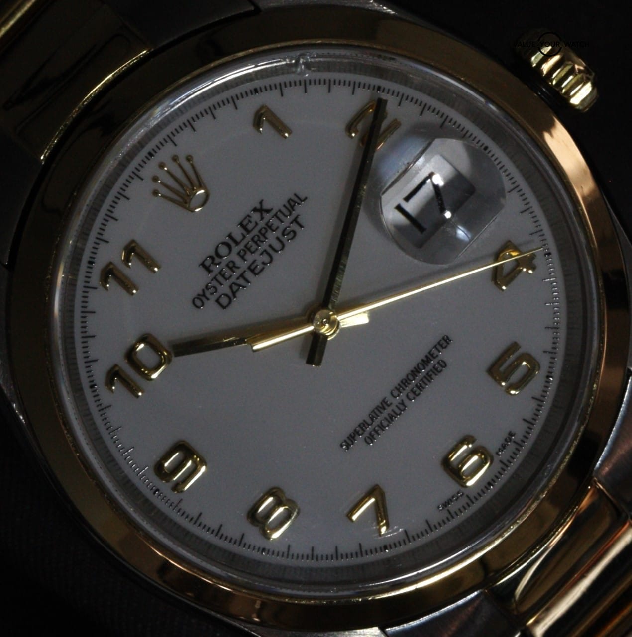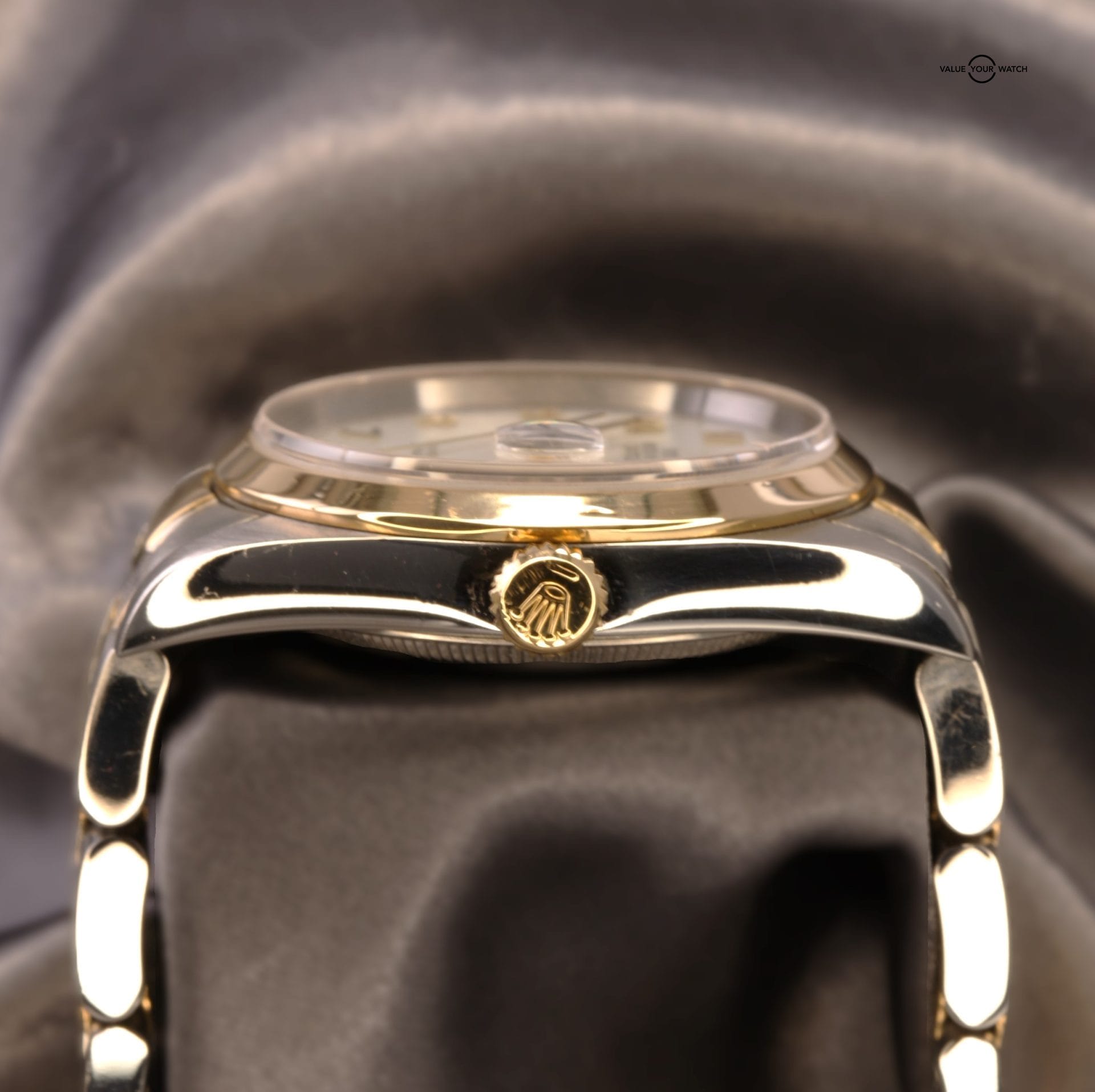 Introducing this exquisite two-tone Datejust, presented for your consideration. This captivating timepiece showcases a radiant white dial adorned with Arabic numeral hour markers in yellow gold. The striking contrast between the white dial and the smooth yellow gold bezel complements the elegance of this watch. Paired with an 18k yellow gold and stainless steel bracelet, it offers a harmonious blend of luxury and durability.
