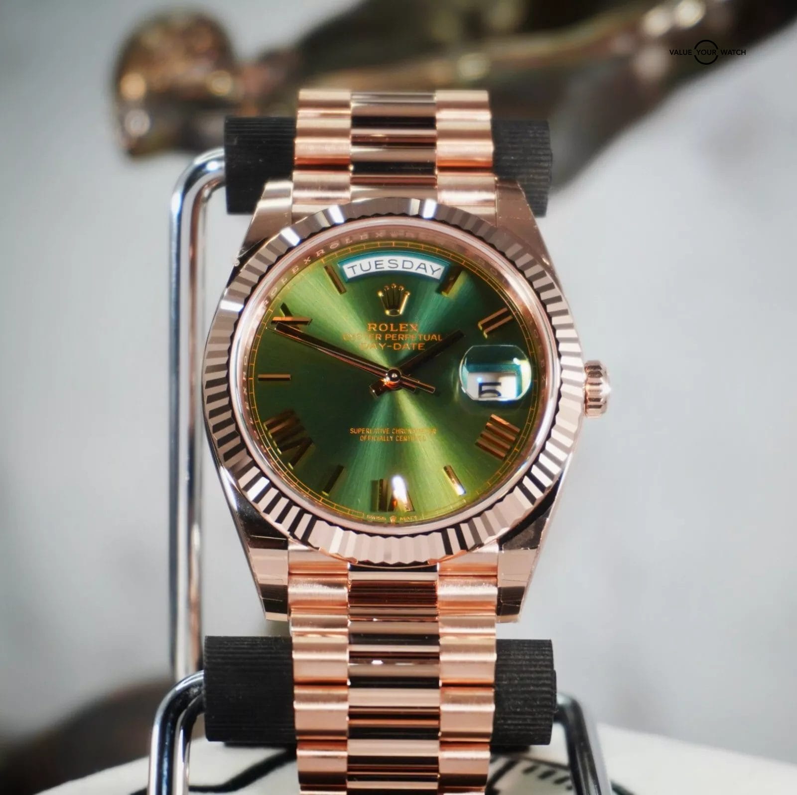 Rolex Day-Date 228235 Olive Dial President Bracelet Unorn BNIN B&P