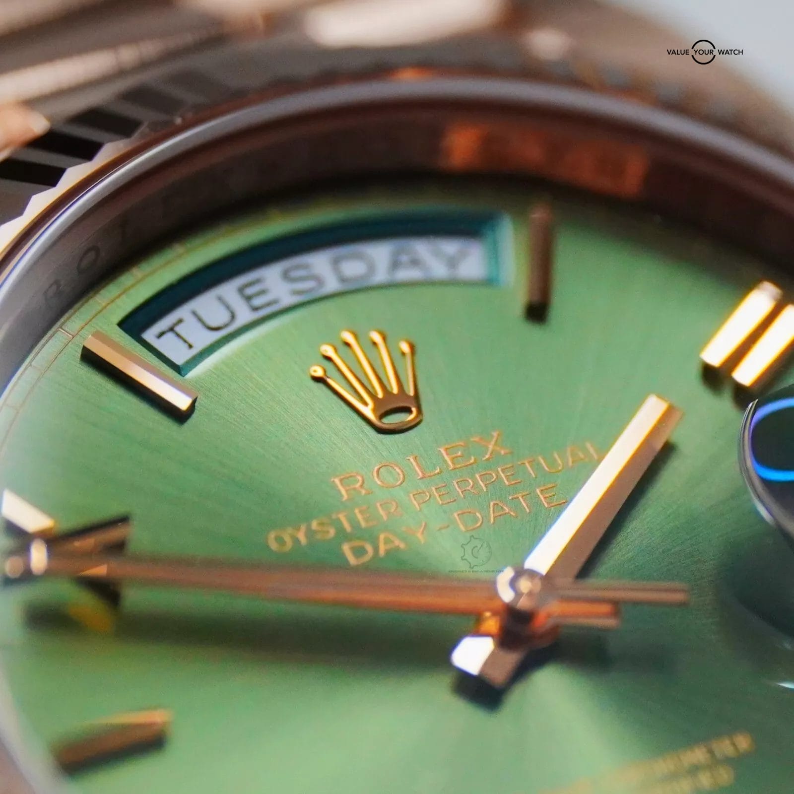 Rolex Day-Date 228235 Olive Dial President Bracelet Unorn BNIN B&P