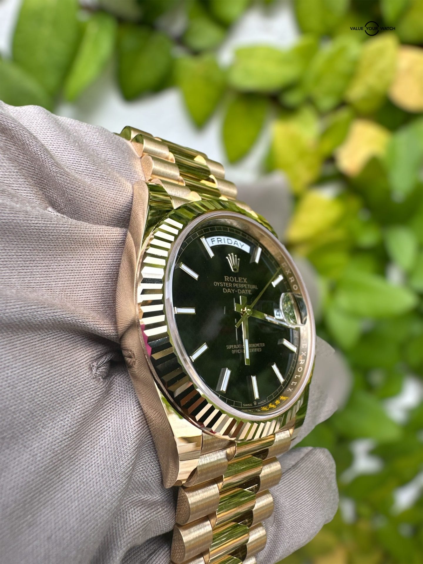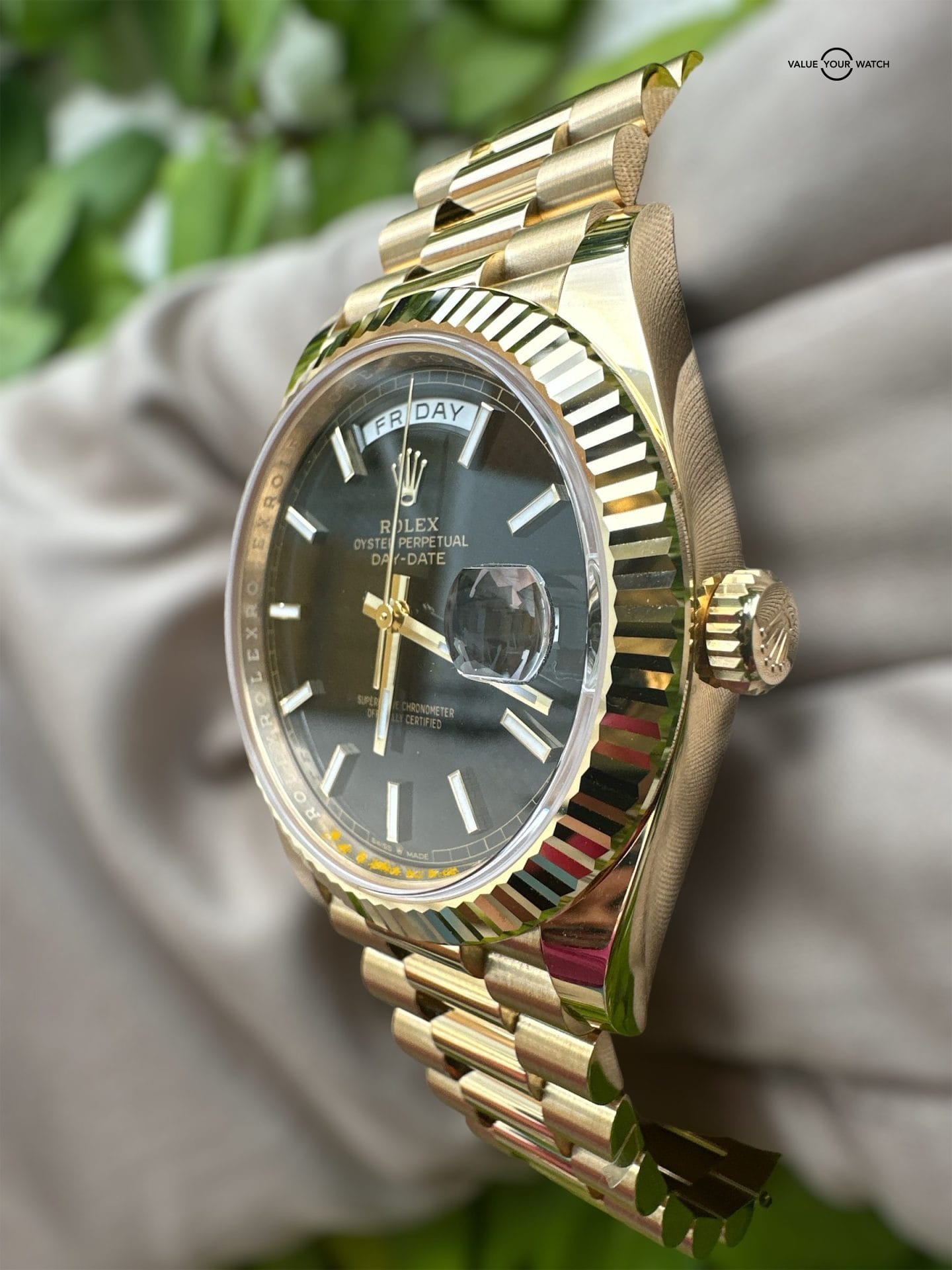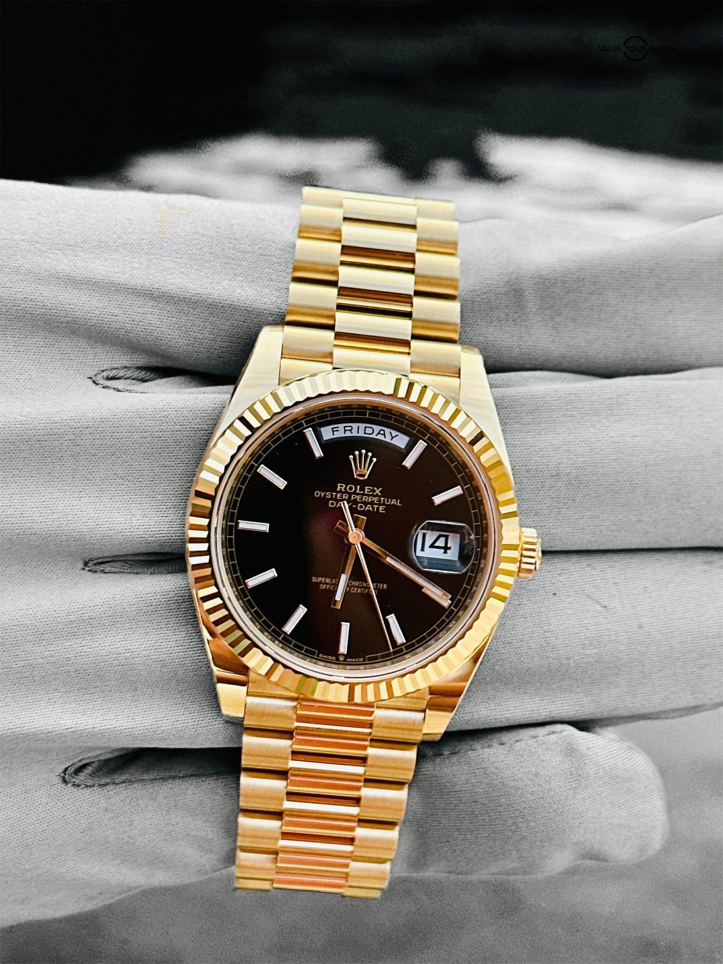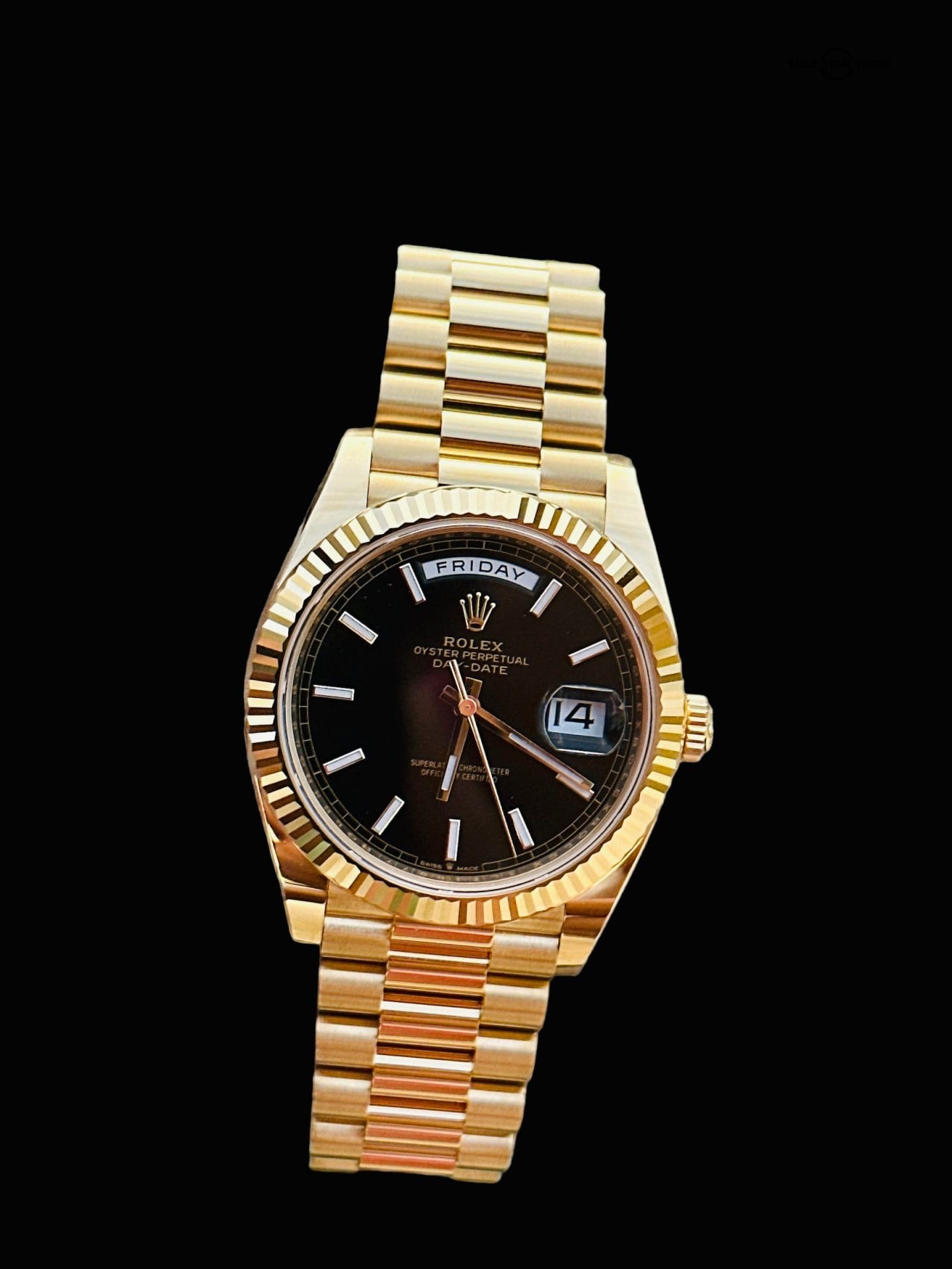 Rolex Day-Date Presidential 40mm Black Diagonal Motif Index Dial 228238
