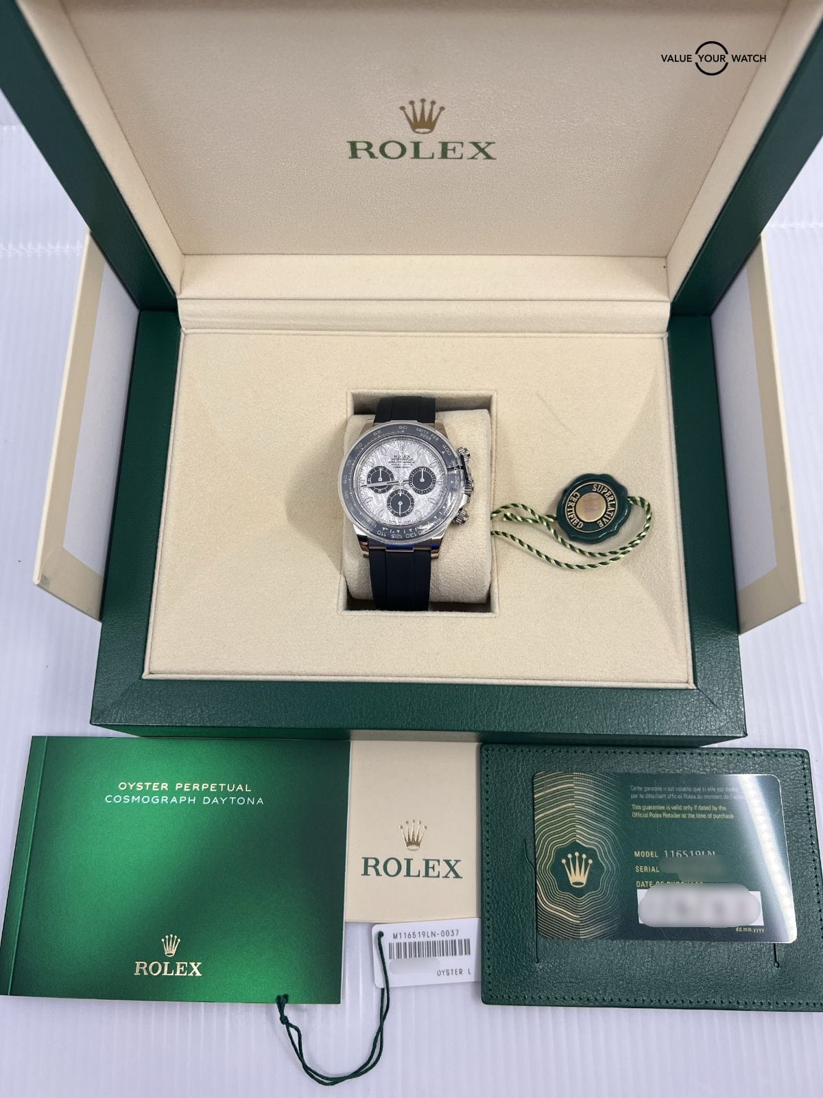 Specification: 2022 Complete Set Rolex Daytona Meteorite Dial White Gold Oysterflex 116519LN