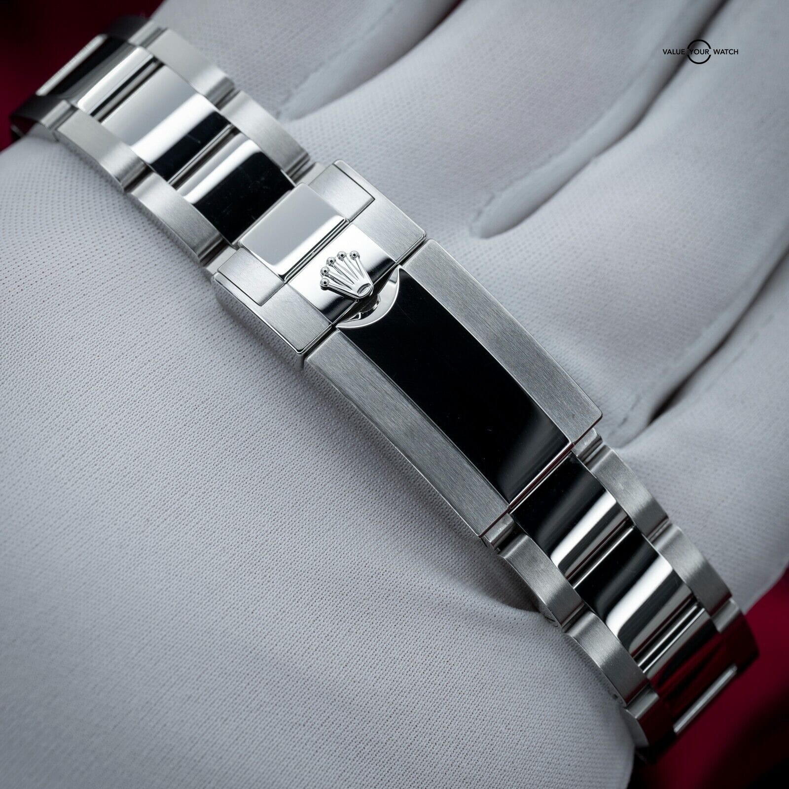 It will come with the outer beige box, green Rolex box, international warranty card, manual, and warranty booklet. It will come fully linked. The warranty card is dated March 28th, 2023, so the 5 year Rolex international warranty will be valid until March 2028.