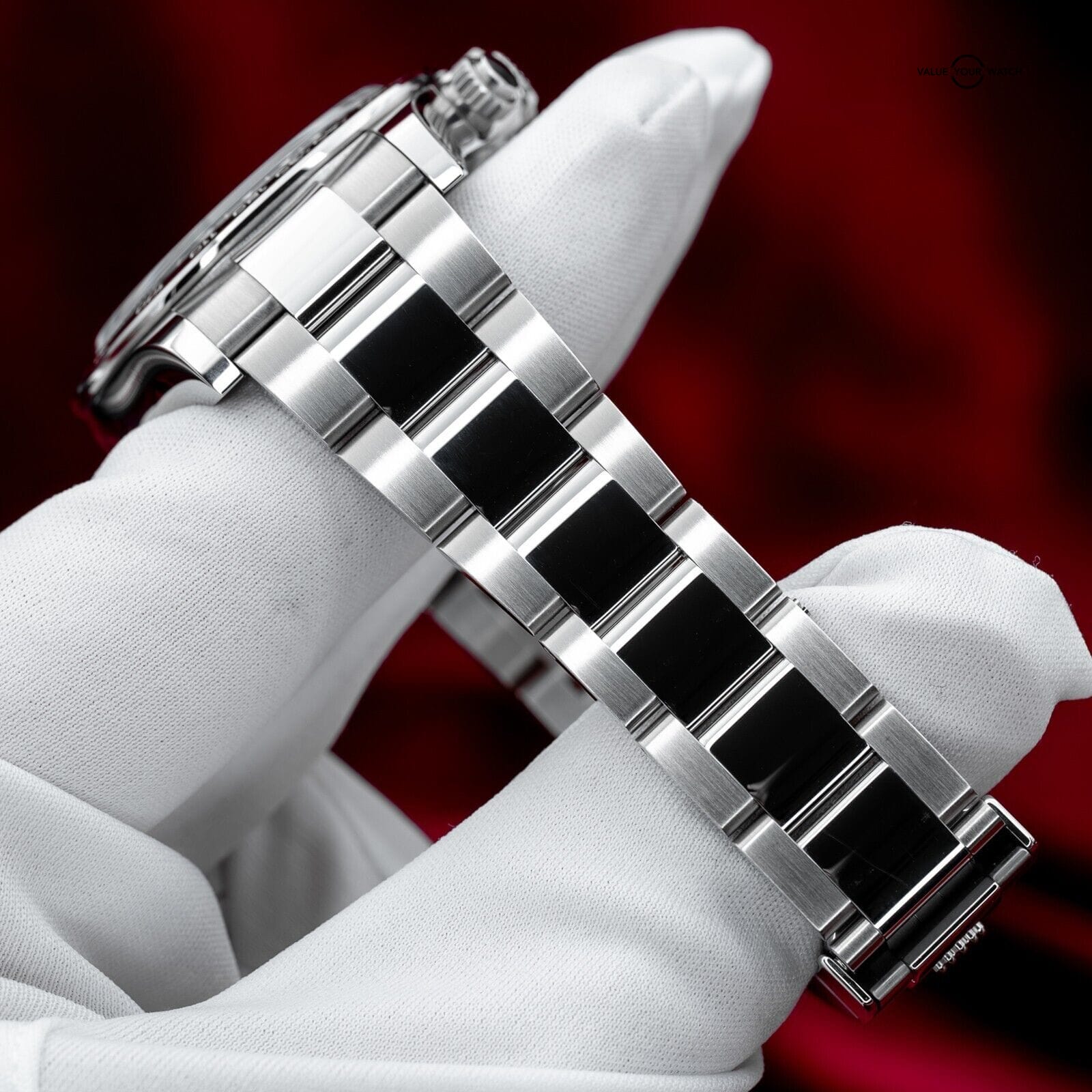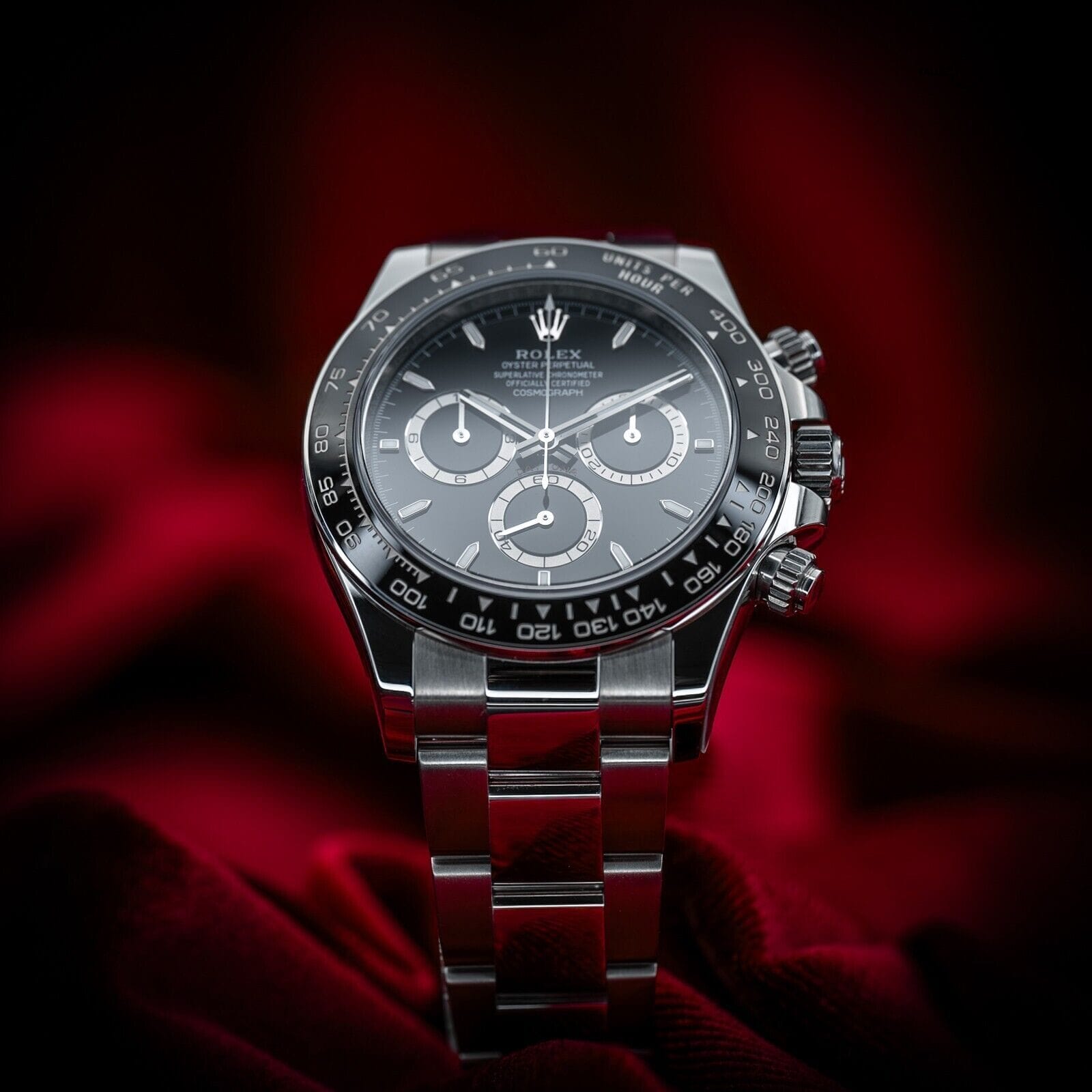 Effortlessly cool and meticulously engineered, the Rolex Cosmograph Daytona Reverse Panda combines the thrill of the racetrack with the sophistication of black tie. This 40mm Oystersteel timepiece, featuring a striking black dial with contrasting subdials, isn’t just about keeping time—it’s about setting the pace in style. Fresh out of the box and ready to make its mark, the Daytona is a clear signal you’re ahead of the rest.