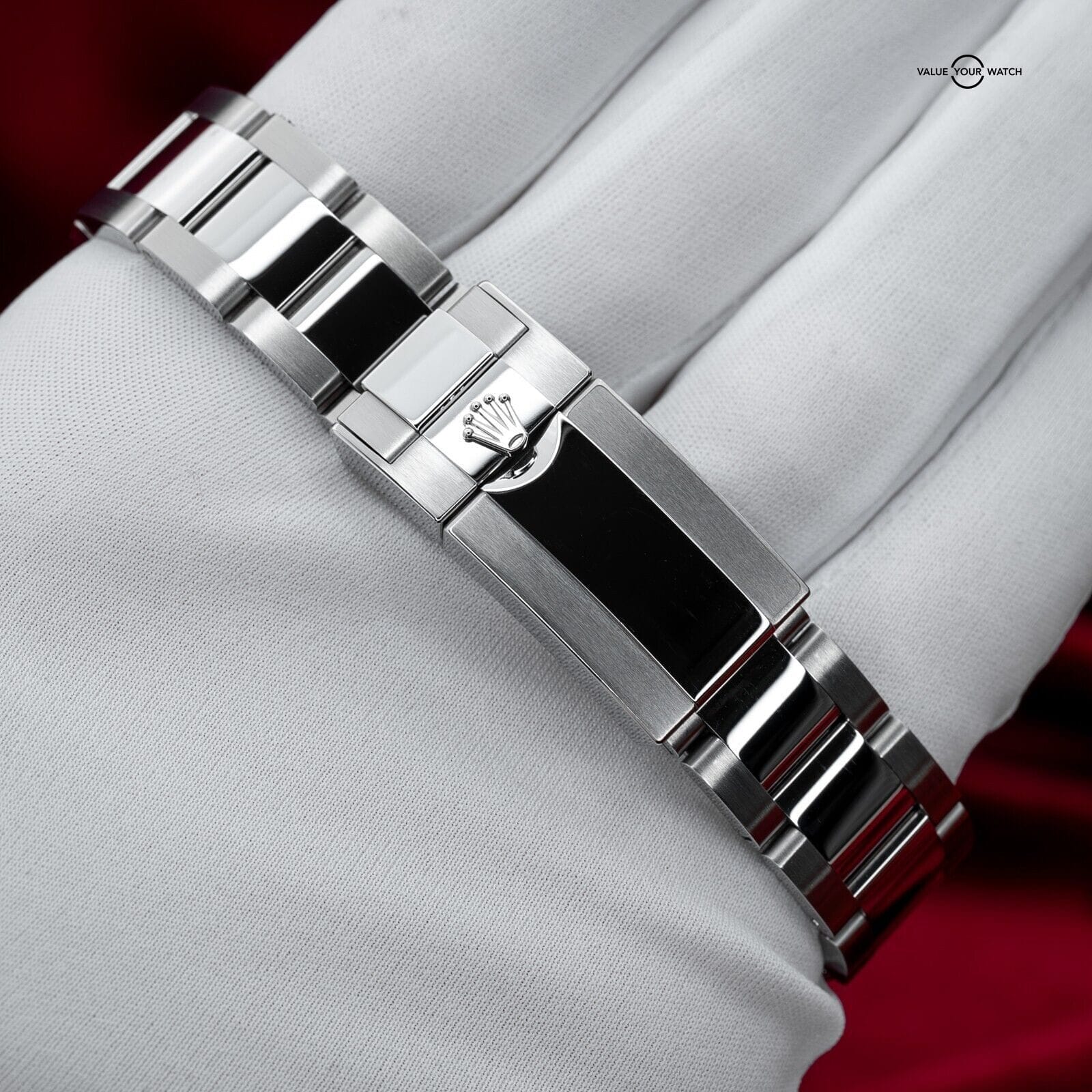 This timepiece comes with outer white Rolex box, the green Rolex box, warranty card, card holder, warranty booklet, green tag, and white tag. The Rolex International warranty card is dated January 21st, 2024, so the 5 year Rolex International Warranty is valid until January 2029.