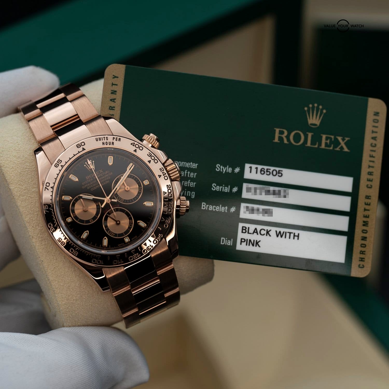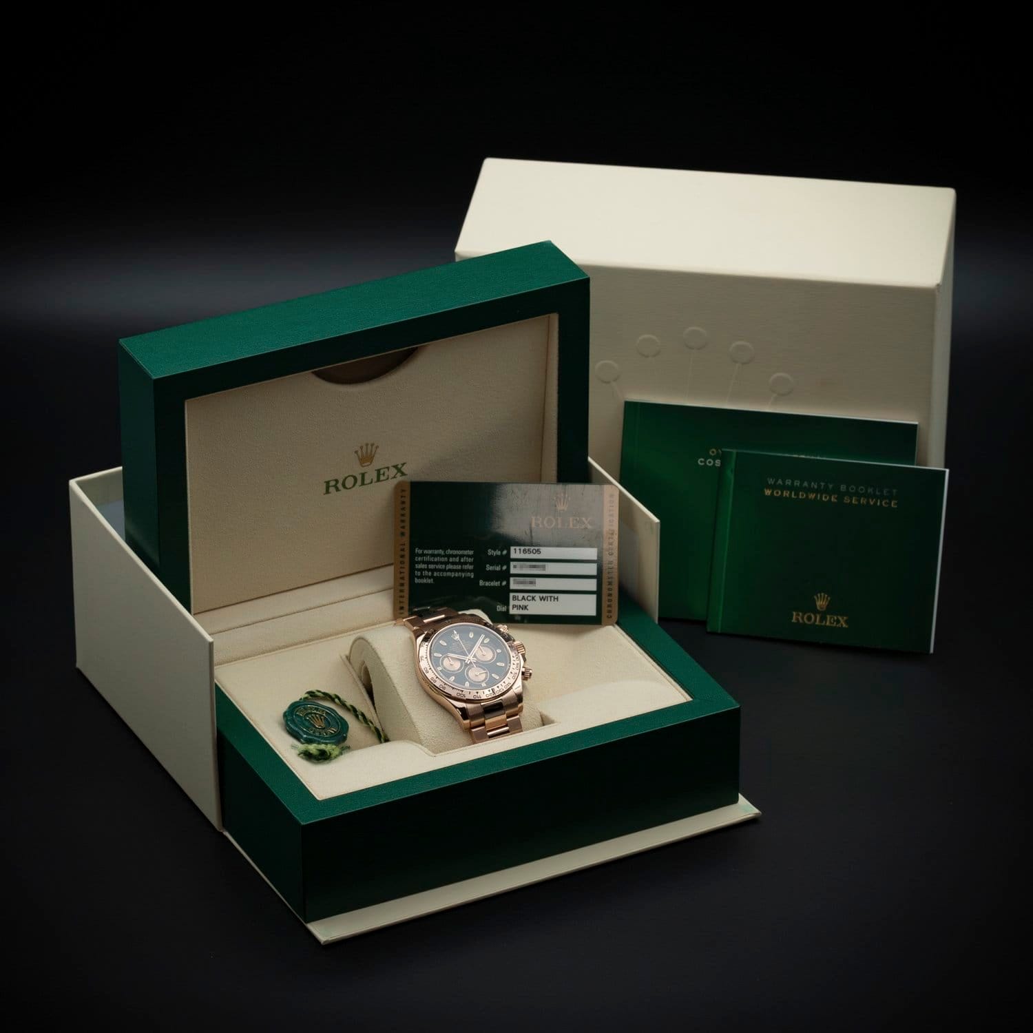 Rolex Daytona 116505 18k Everose Gold Black Dial Oyster Bracelet Box & Papers