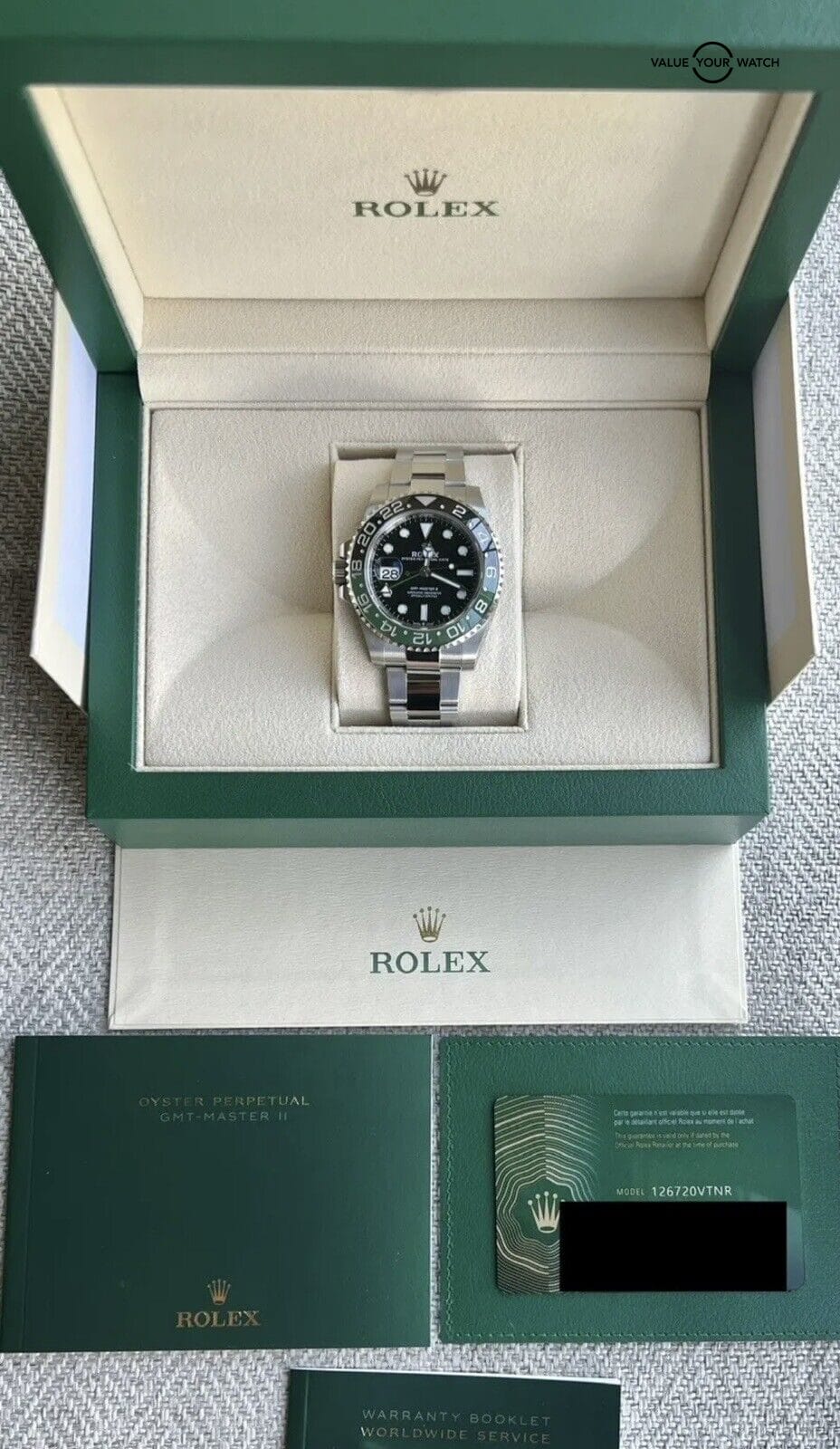 Introducing the Rolex GMT-Master II 126720VTNR, a stylish wristwatch perfect for men who love to accessorize. With a unidirectional rotating black and green bezel, this timepiece is made of durable stainless steel and features a 40mm case size. The bracelet is a Rolex Oyster design with a folding Oysterclasp closure, and the watch is water-resistant up to 100m (10 ATM).