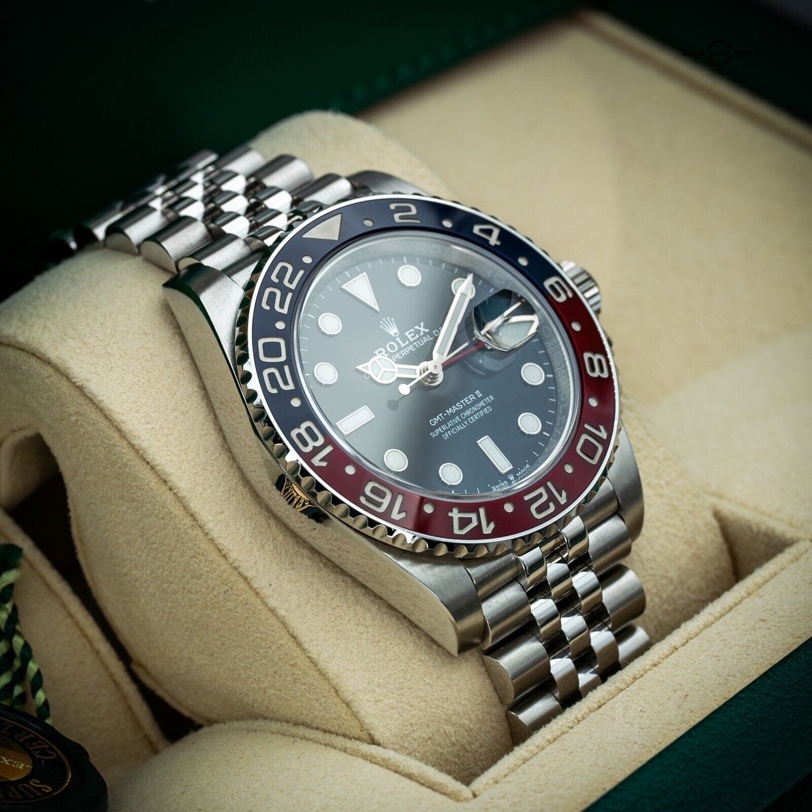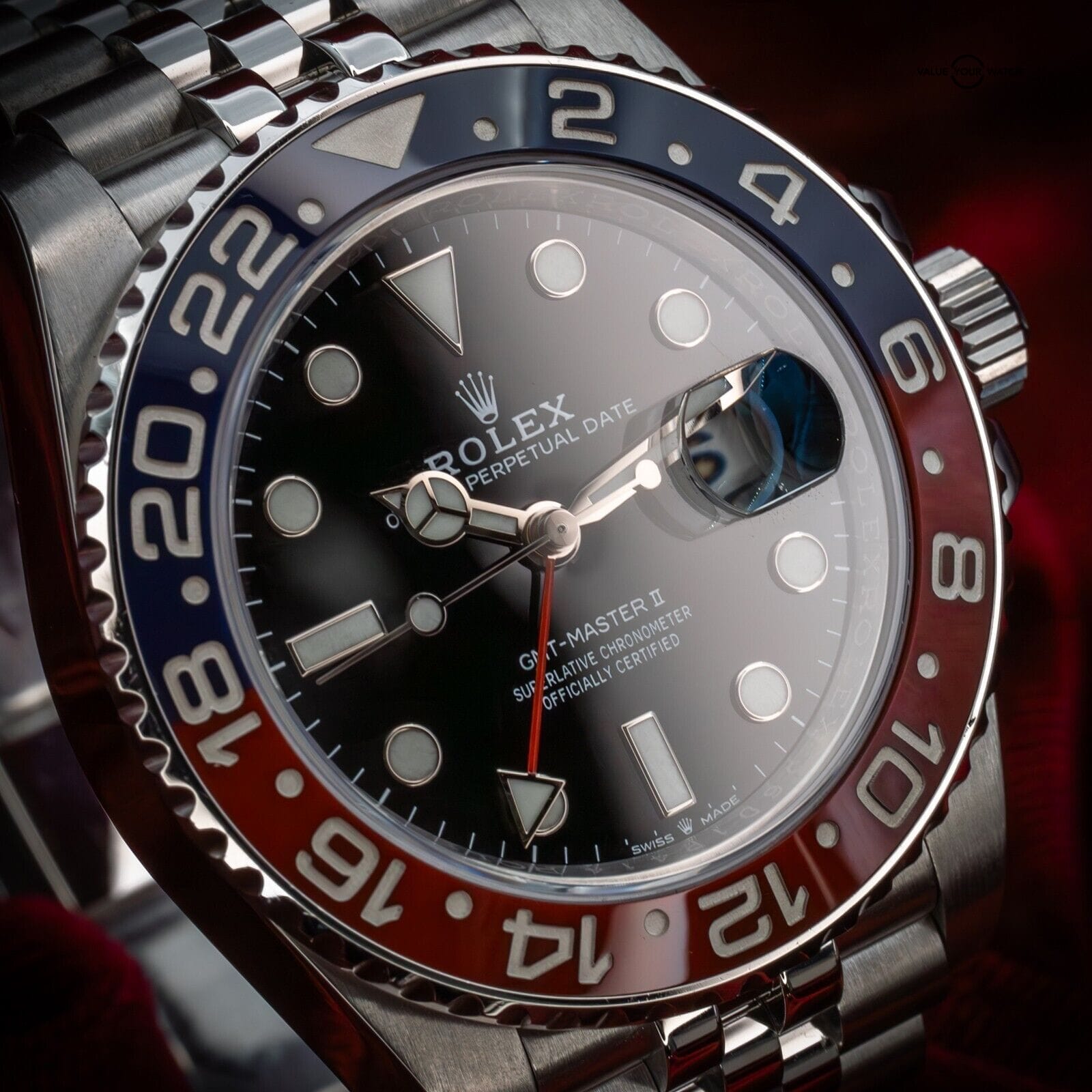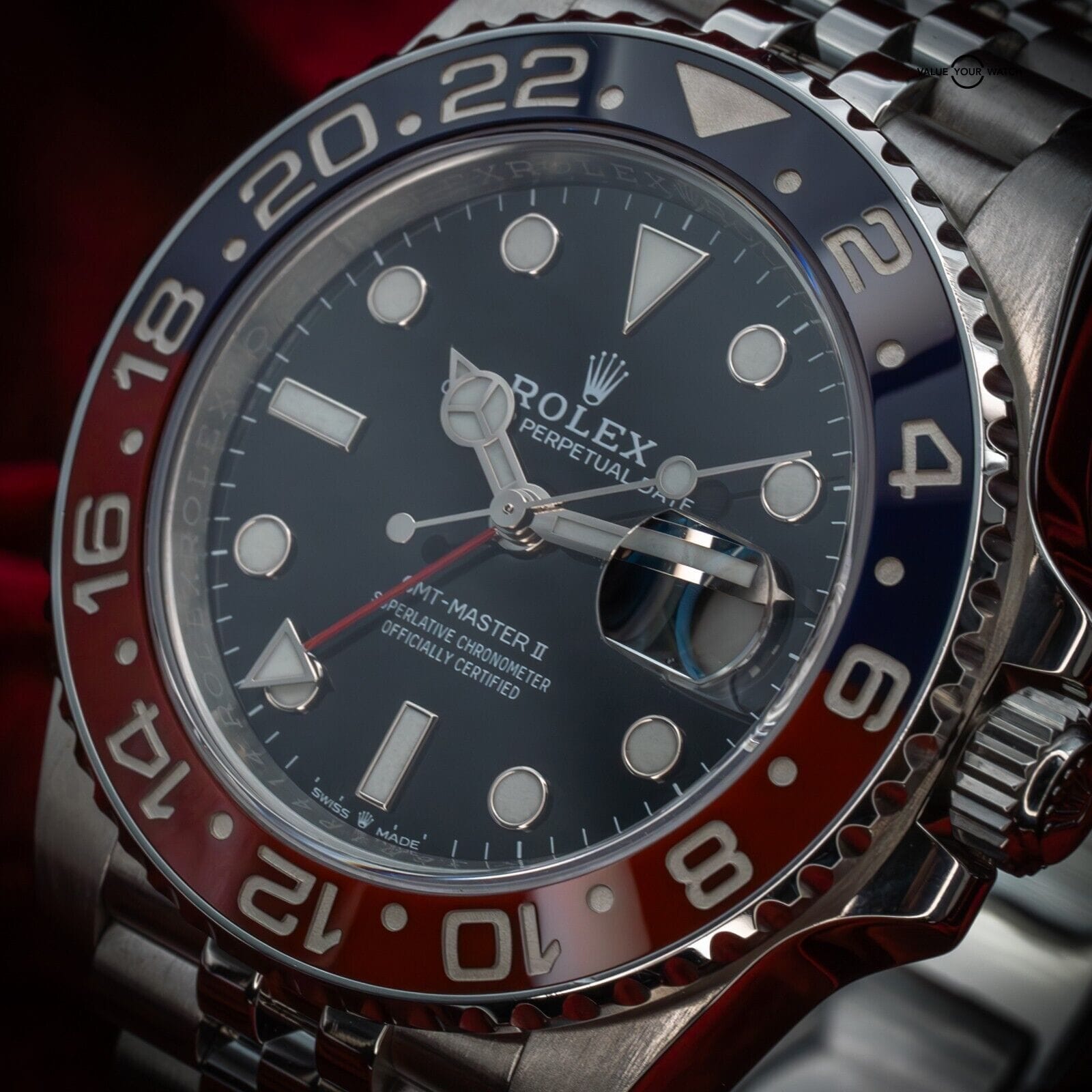 Arguably the most iconic version of the GMT Master, the Pepsi is one of the most instantly recognizable Rolexes in the world.