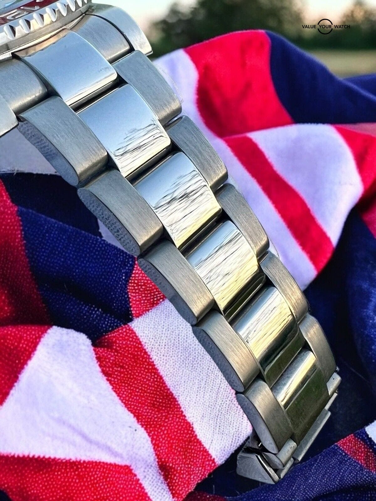 This gorgeous solid white gold GMT Master II Pepsi comes with its original box and papers/card and is in very good condition. The watch has been professionally inspected and tested and has a clean bill of health, ready for its next owner to enjoy for years to come.