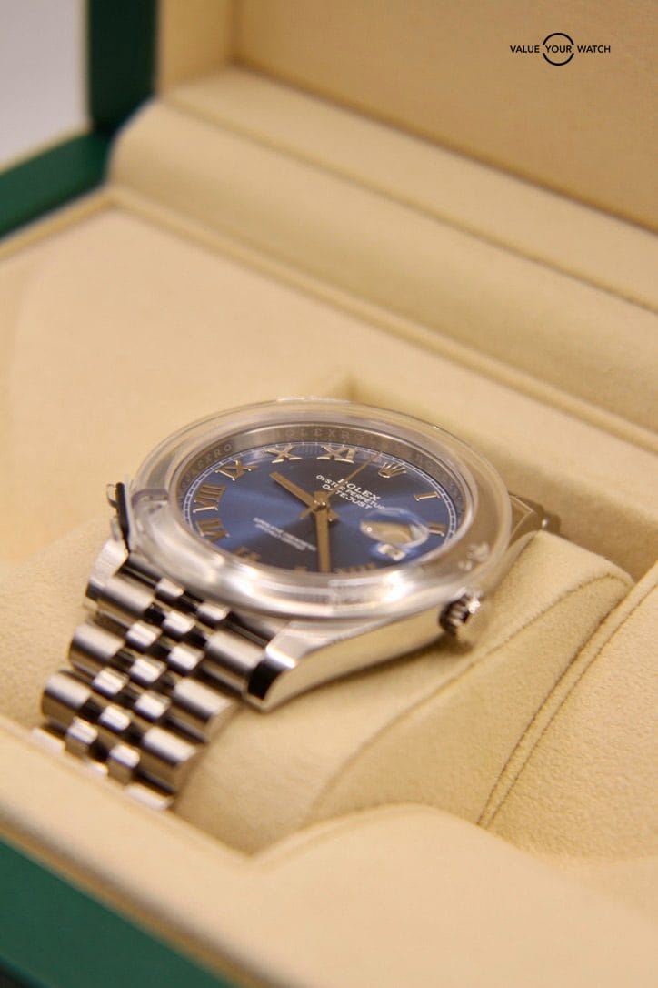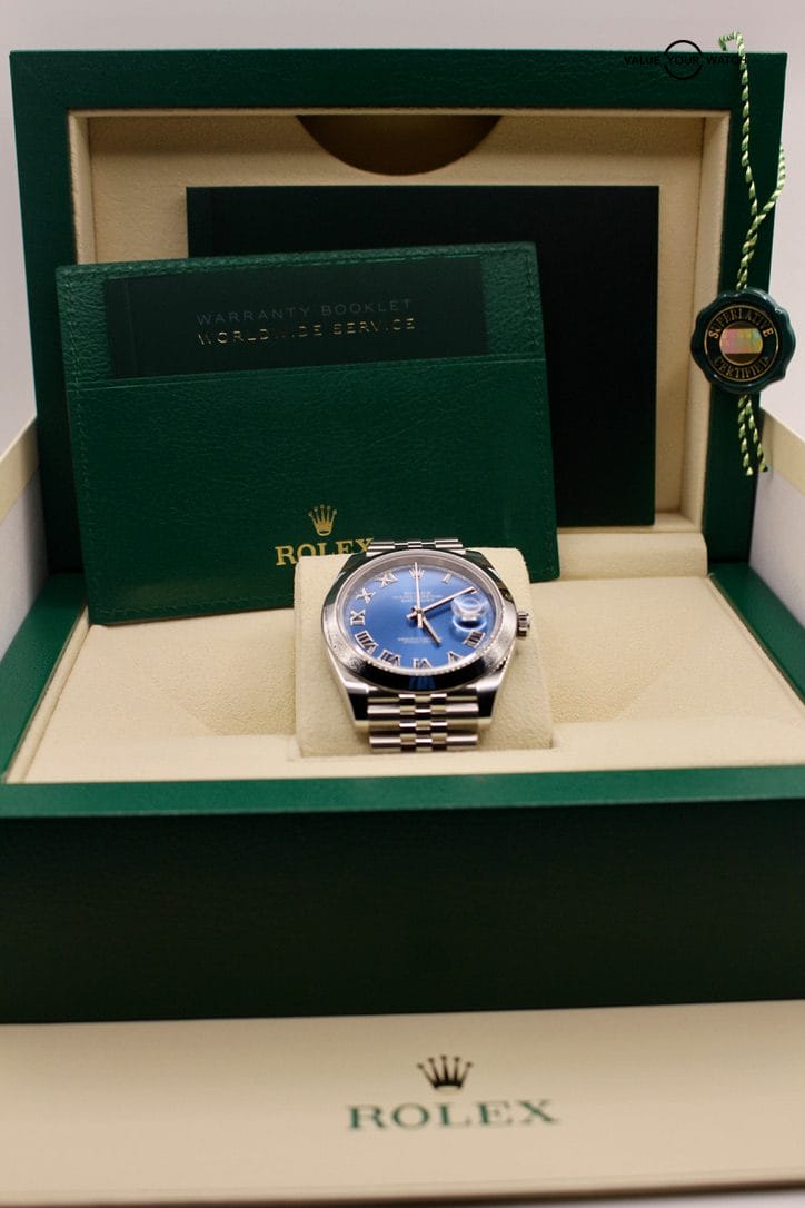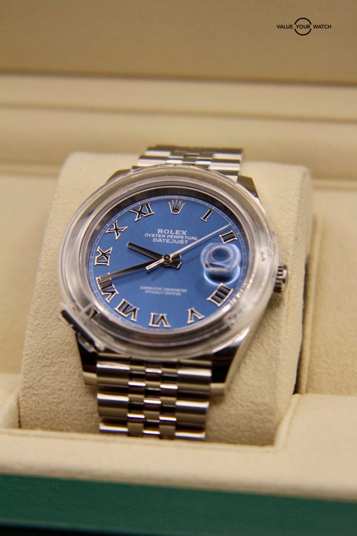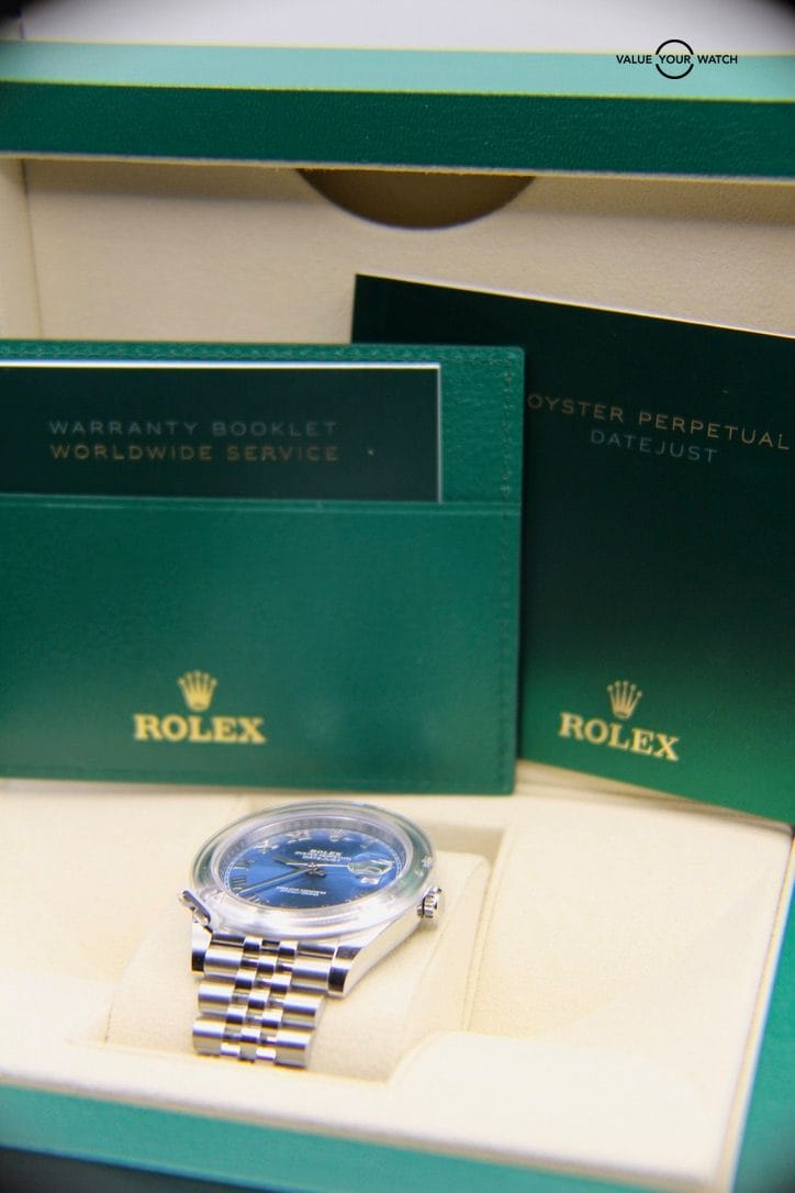 Very little needs said about this timepiece! It’s the watch we’ve nearly all wanted at some point and likely got us into the hobby in the first place! This iteration is the brand new for 2022 41mm highly sought after blue dial with Roman Indices! Featuring a 2022 dated card the watch does not appear to have ever been worn.