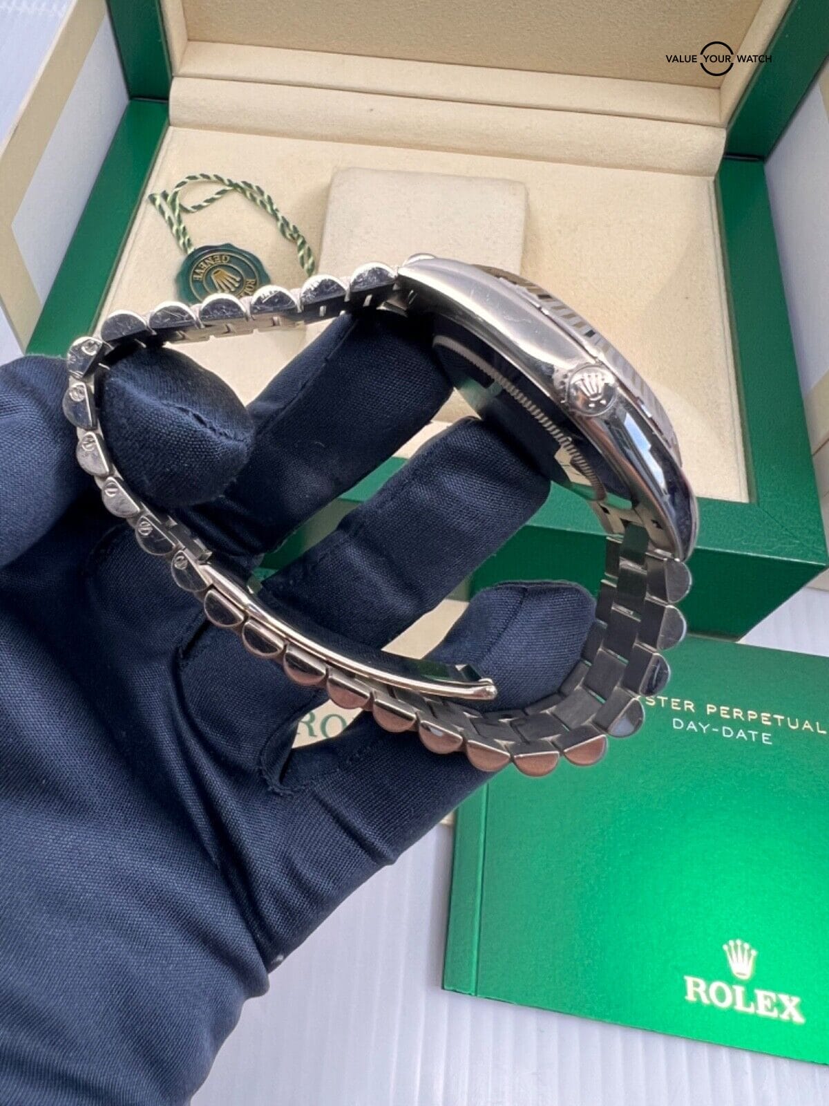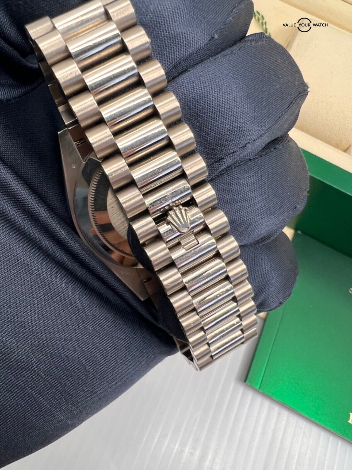 In conclusion, the 2021 Olive Green Dial Full Links 40mm White Gold Rolex President is an exceptional timepiece that combines timeless luxury with contemporary flair. Rolex’s reputation for unparalleled craftsmanship and quality ensures that owning a Rolex is more than just wearing a watch—it’s a symbol of prestige and excellence. If you’re looking to buy or sell this watch online, following these tips will help you navigate the process with confidence and make a successful transaction.