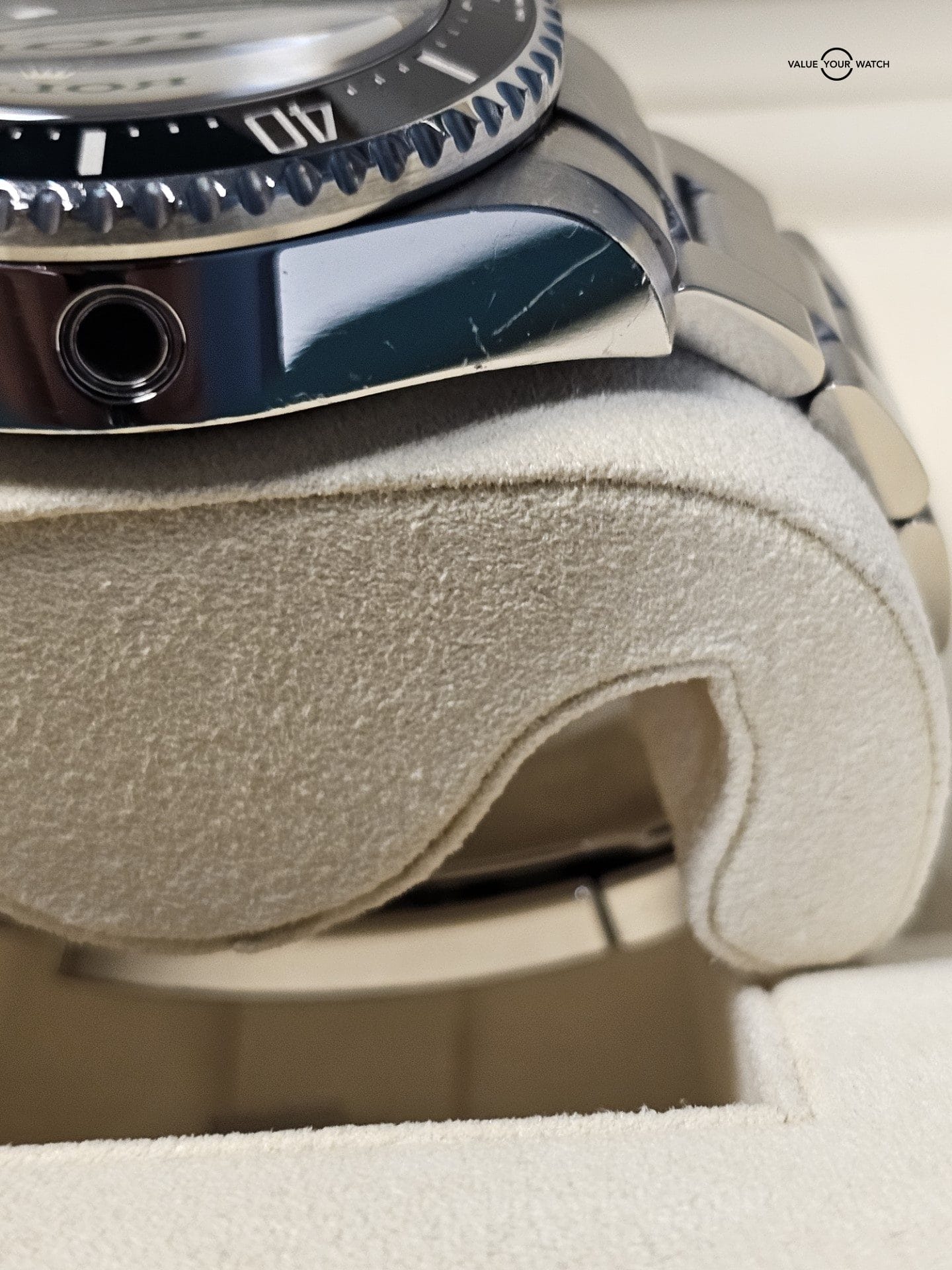 All of our pictures are of the actual watch and its condition for a completely transparent transaction.  We offer authentic, genuine luxury watches that will pass authenticity.  All of the items you see in the pictures are what comes with the watch when shipped.