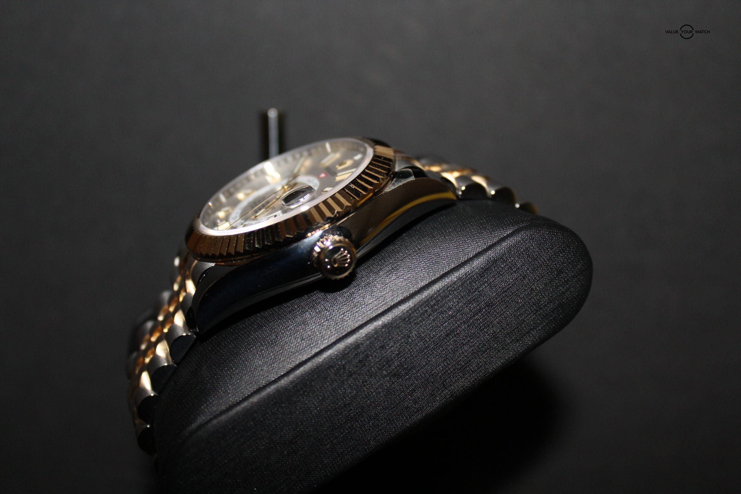 This Rolex Sky-Dweller Two Tone is brand new, never worn and a complete set that comes with both Rolex original boxes, Warranty Card, Two Booklets, and original Hang Tag. Please reach out to us if you would like to take a closer look.