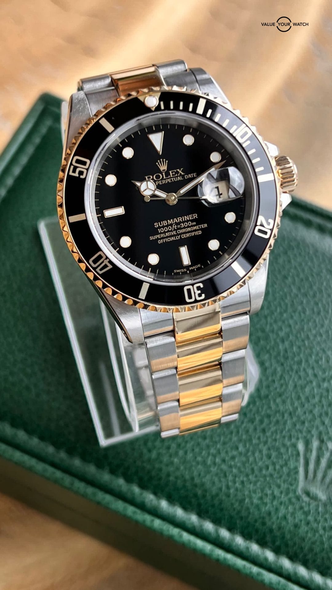 A very special Rolex is up for sale today. The Submariner 16613LN with the ceramic bezel. This is the version with the gold though clasp on the bracelet.