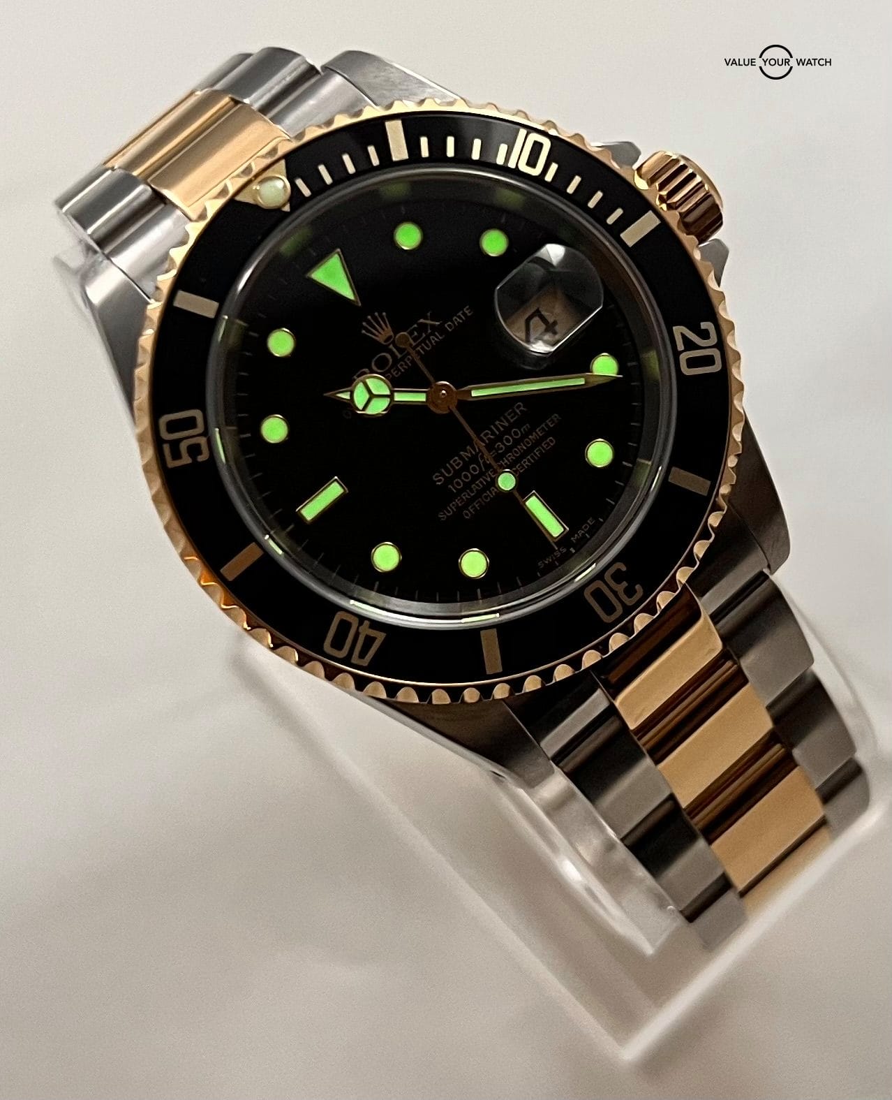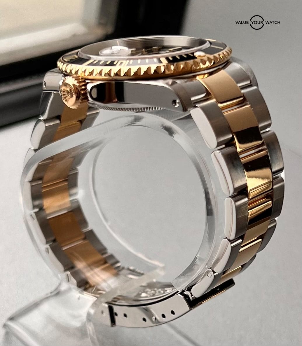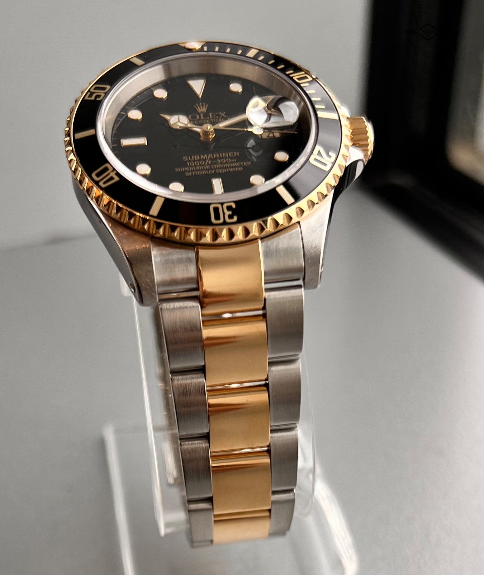 A very special Rolex is up for sale today. The Submariner 16613LN with the ceramic bezel. This is the version with the gold though clasp on the bracelet.