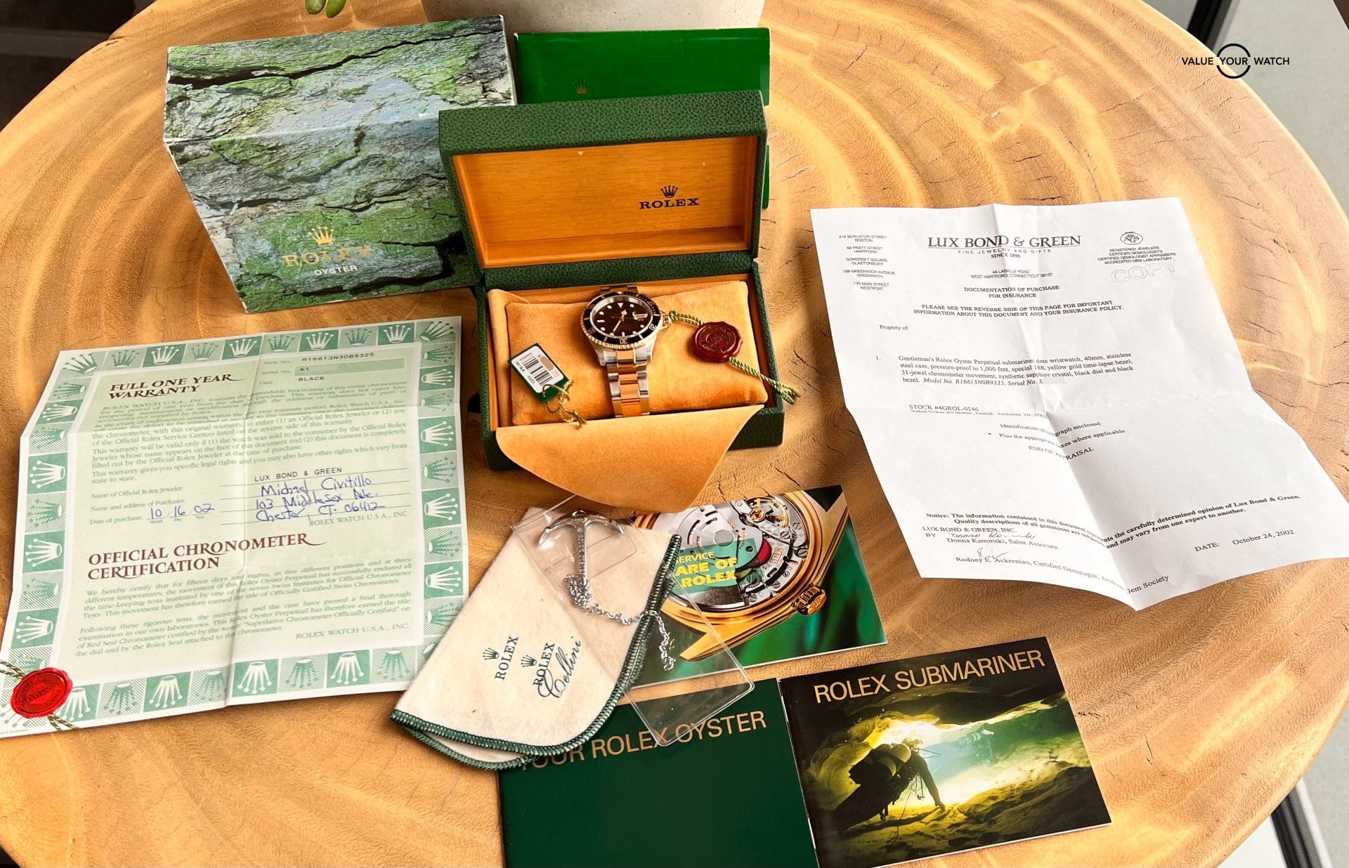 It is not everyday you come across a well taken-care-of Submariner that retains all of the accessories just as it was sold from the AD. With just one owner, this timepiece includes: