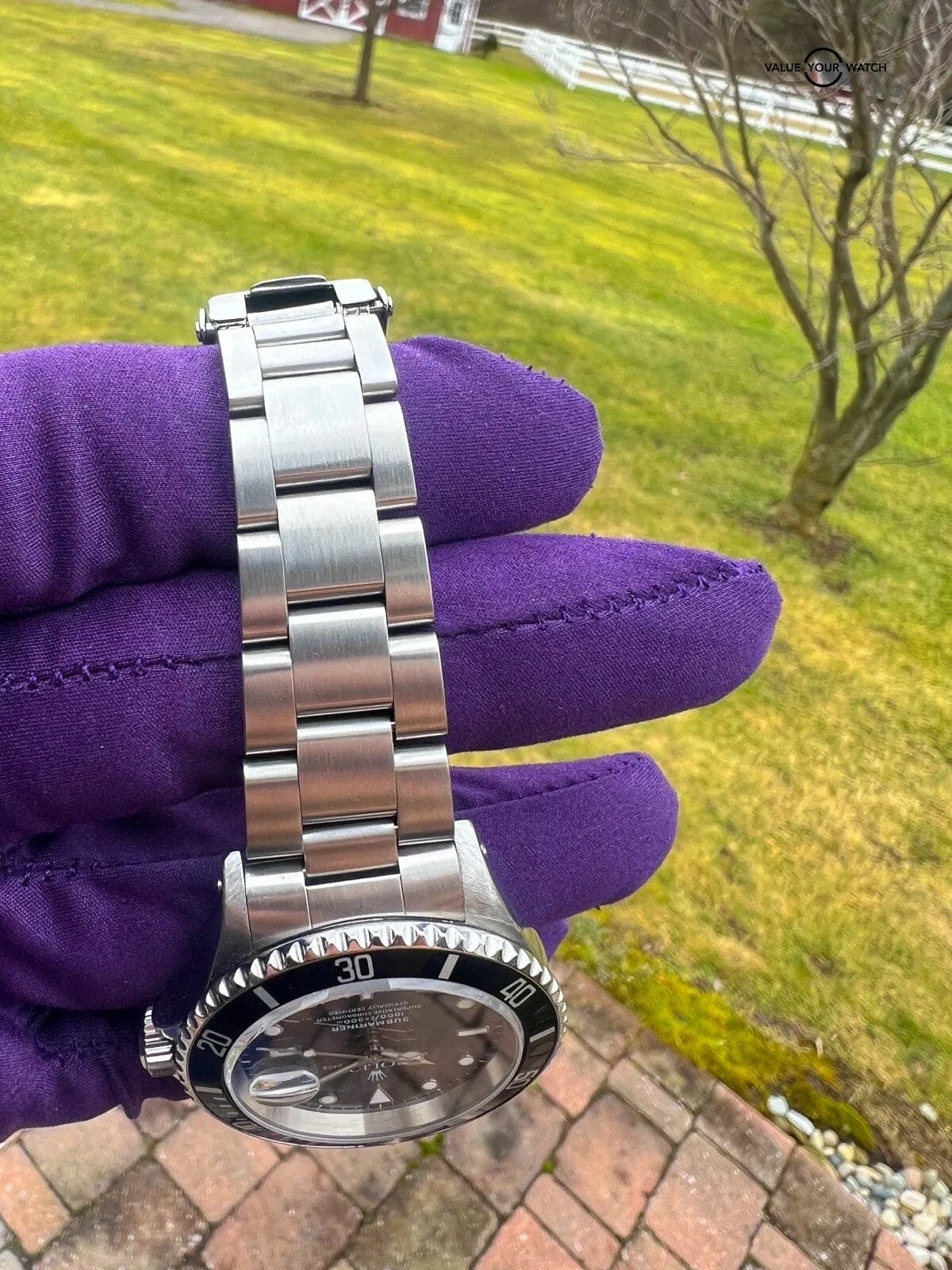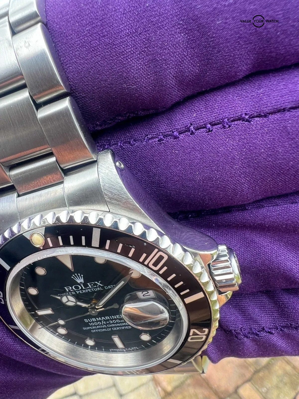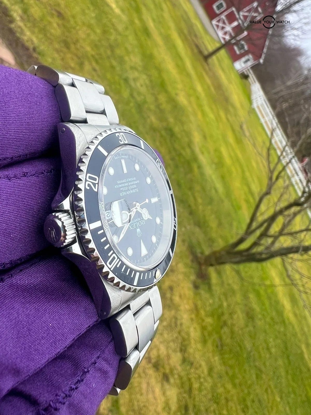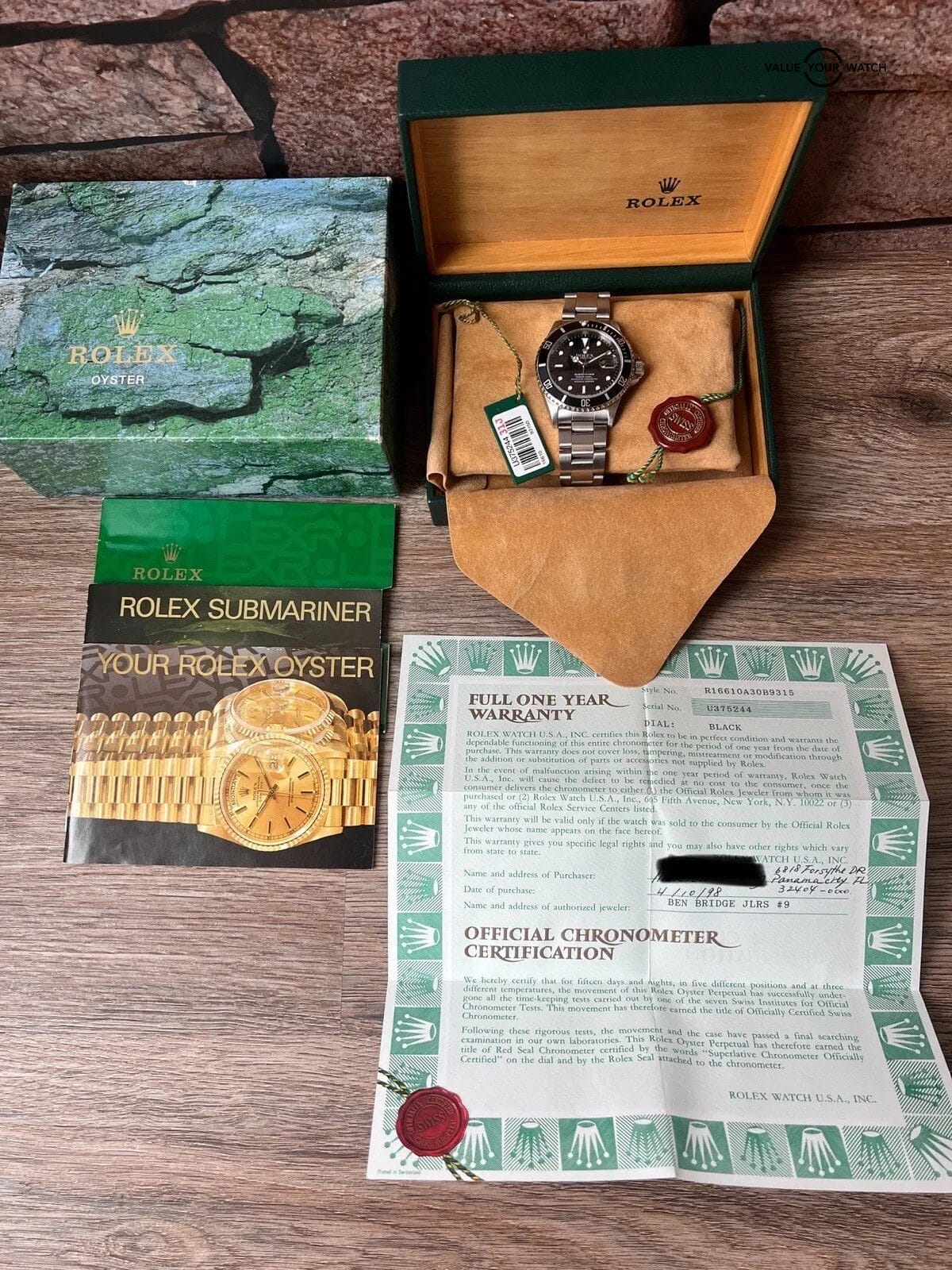 This is a stunning example of a late 90s (1998) submariner date in very good condition for its age, complete with the original box, papers, serialized hang tag, and all of the additional booklets and red tag that came with it.