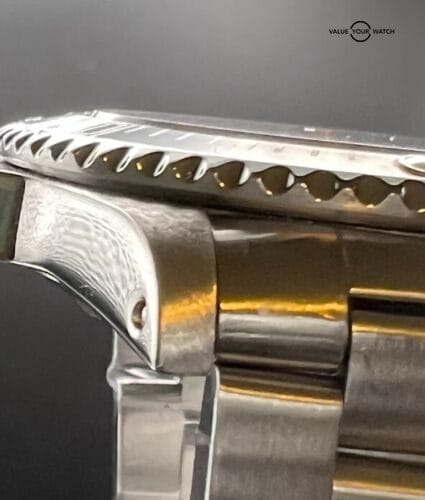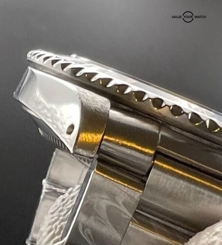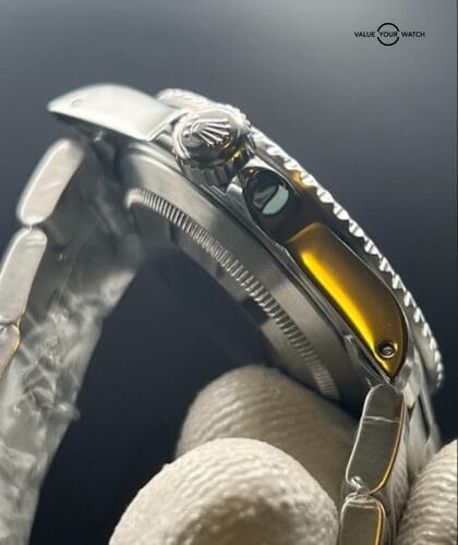 The Submariner No-Date 14060 Flat 4 showcases a classic and timeless design. With a 40mm stainless steel case, it offers a versatile size suitable for various wrist sizes. The absence of a date complication provides a clean and balanced dial. The Flat 4 bezel insert refers to the font style used for the numbers, adding a unique touch to the watch’s aesthetics.